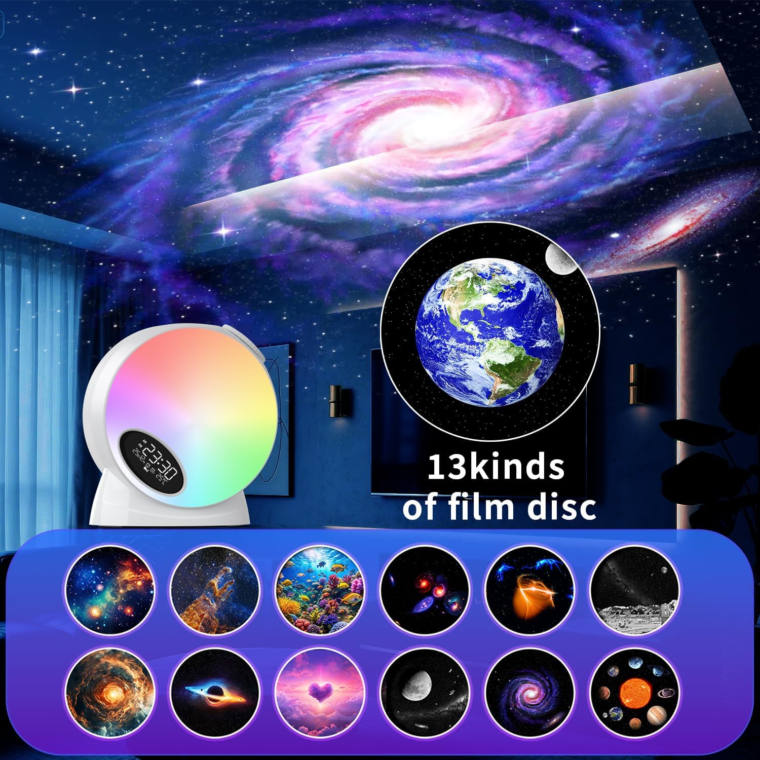 - 【Perfect Gift for Children and Families】:The galaxy star light projector is an excellent atmosphere builder, not only equipped with 13 film discs of different themes, but also comes with 15 kinds of white noise and Bluetooth speaker to play music. The night light projector is perfect for creating a relaxing, soothing and romantic atmosphere in any occasions.It's a perfect gift for kids or adults for bedroom, home theater, party, birthday, Christmas, Halloween, wedding decoration.