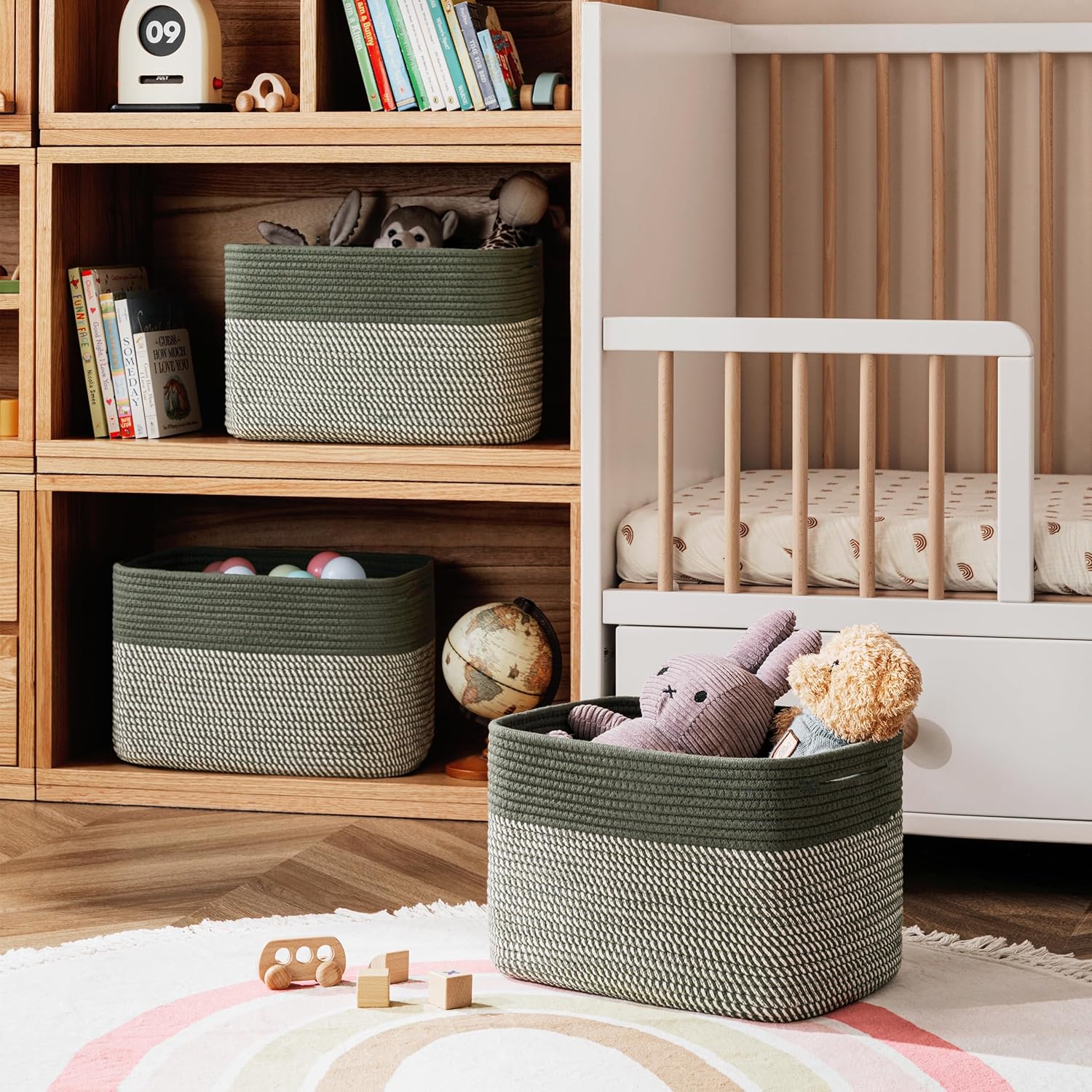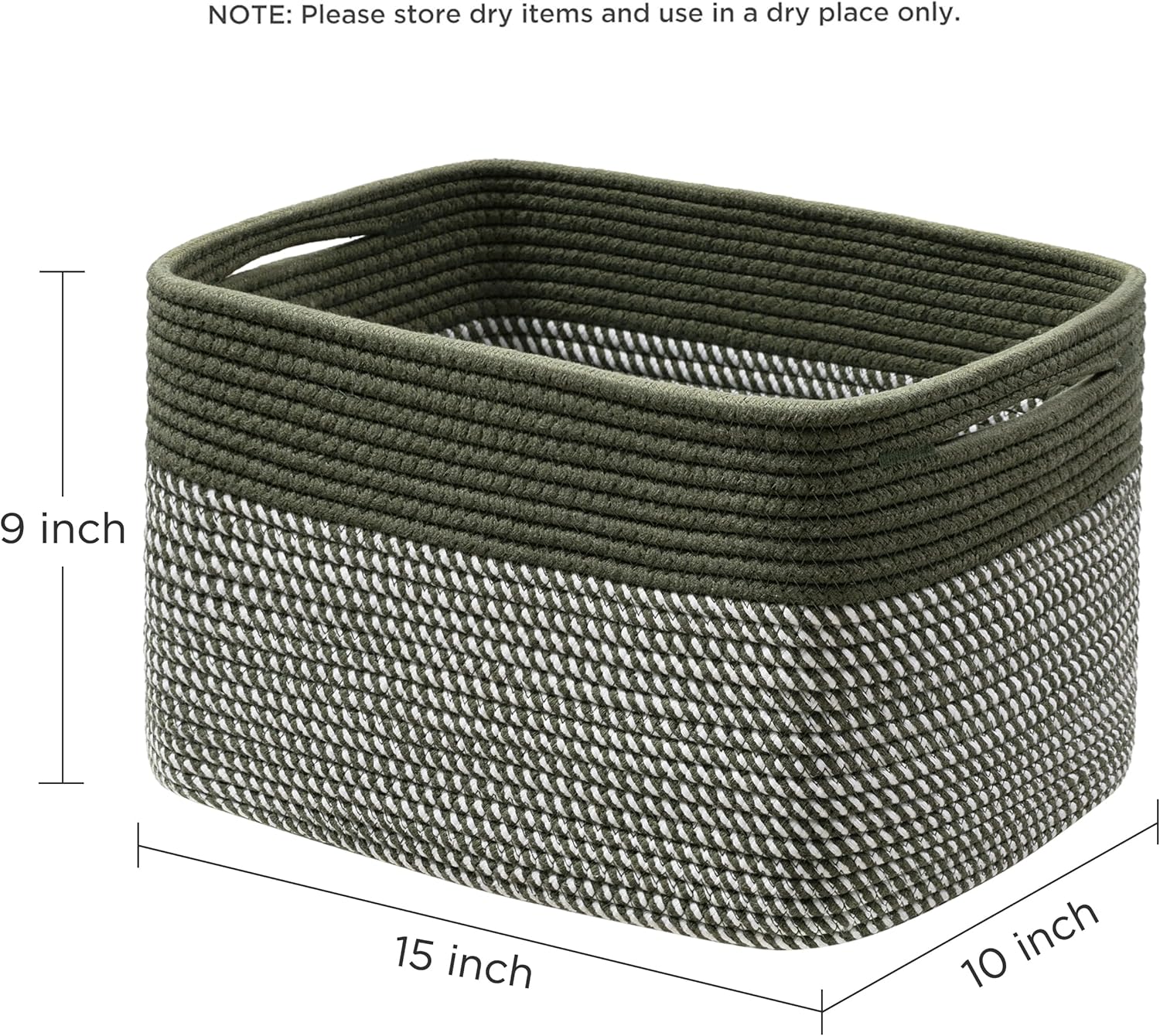 UBBCARE 4 Pack Baskets for Organizing, Woven Storage Baskets for Toys and Towel, Rectangle Cotton Rope Basket with Handles, 15''L x10''W x9''H, Mixed Green