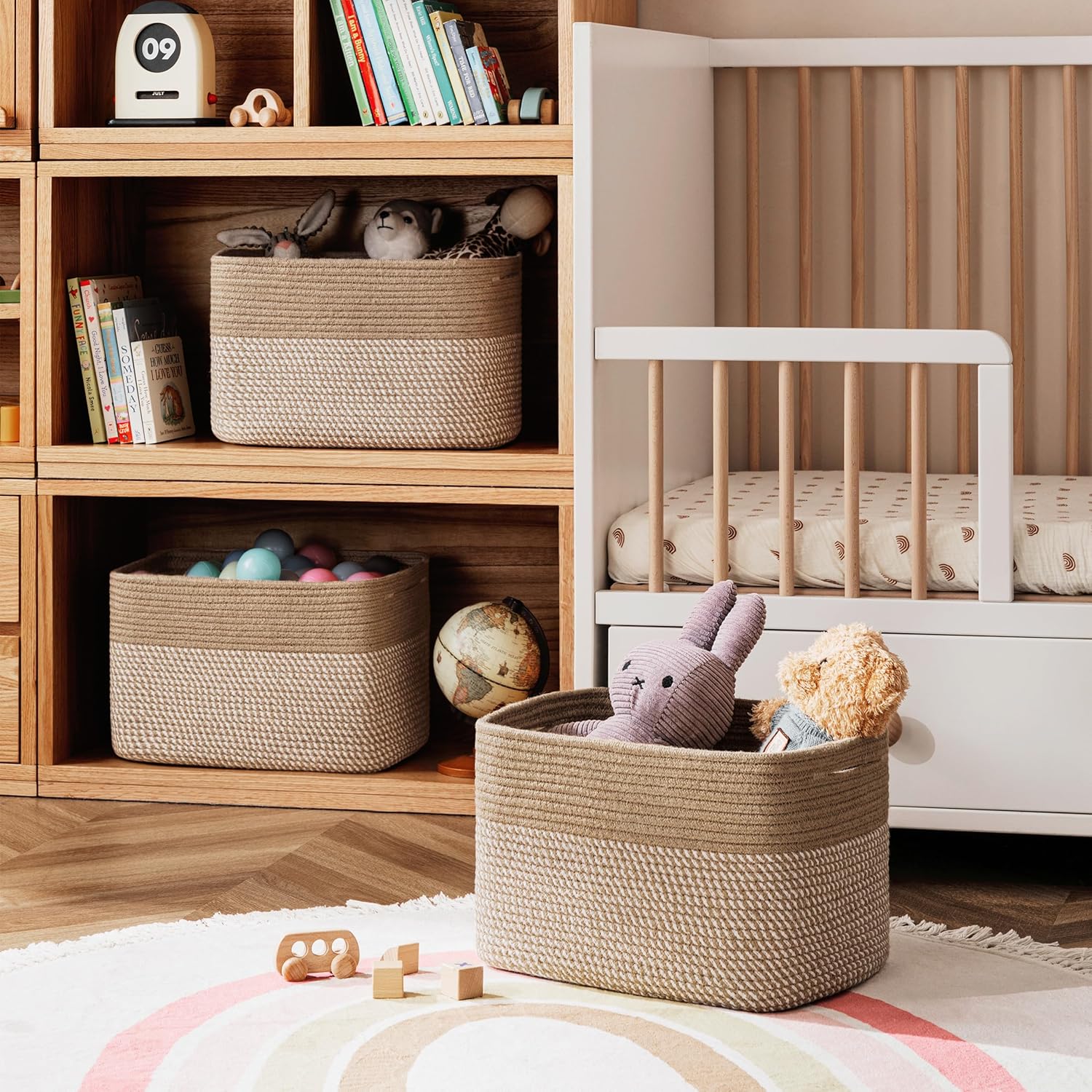 - Soft & Safe Materials: Our storage baskets are made of natural cotton ropes which has no chemical smell, soft and also has no sharp edges. They are hand-woven to be durable and sturdy, ensuring years of use.