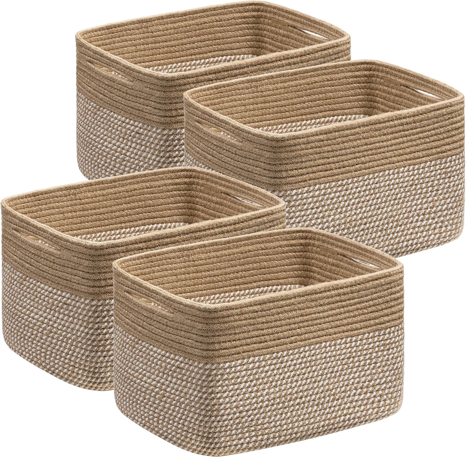UBBCARE 4 Pack Baskets for Organizing, Woven Storage Baskets for Toys and Towel, Rectangle Cotton Rope Basket with Handles, 15''L x10''W x9''H, Mixed Brown