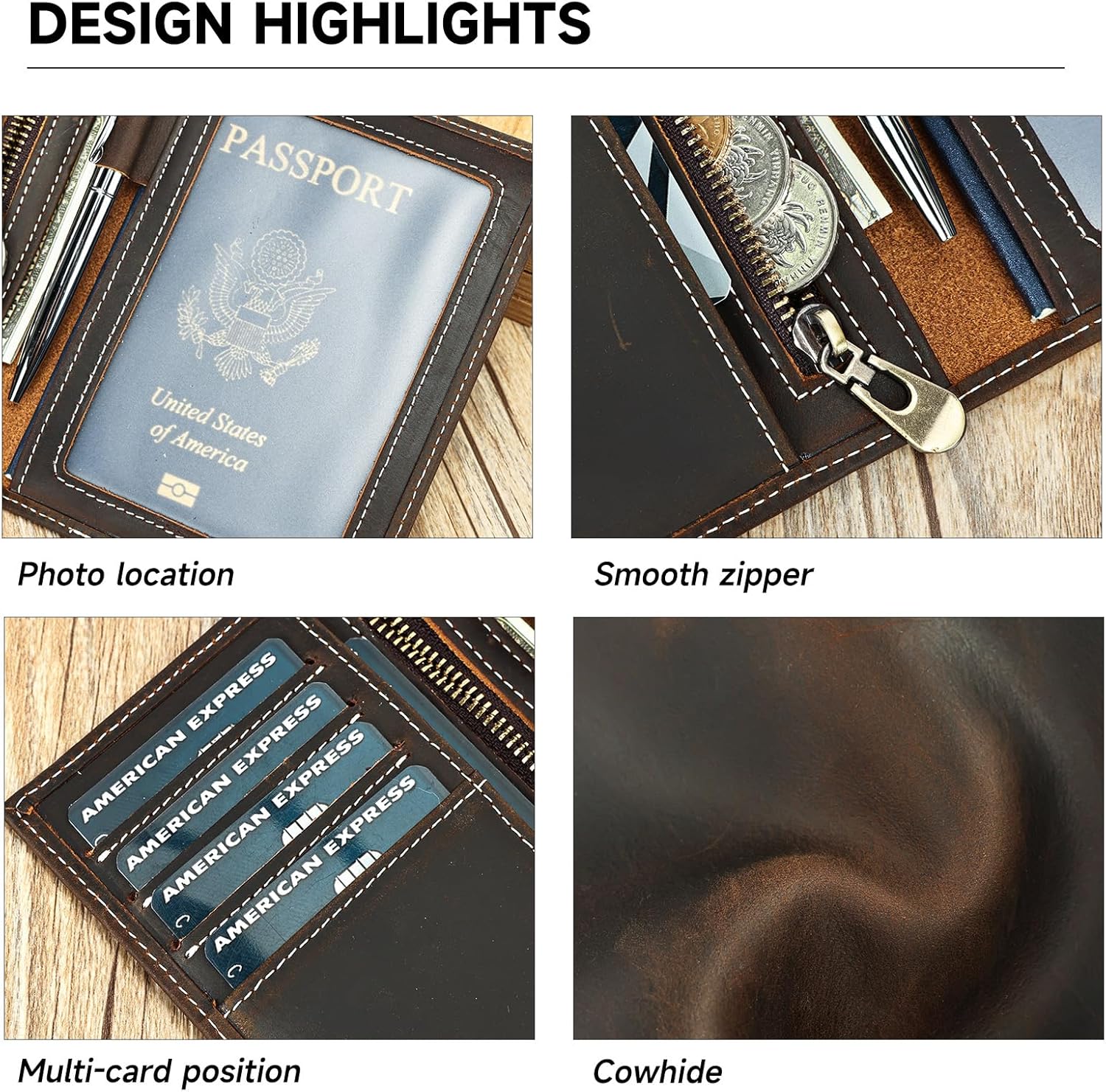 - Smart Organization for On-the-Go Needs Features multiple slip-in card slots, a dedicated passport compartment, and extra pockets for tickets or boarding passes. Keep essentials neatly organized and instantly accessible without bulkiness.
