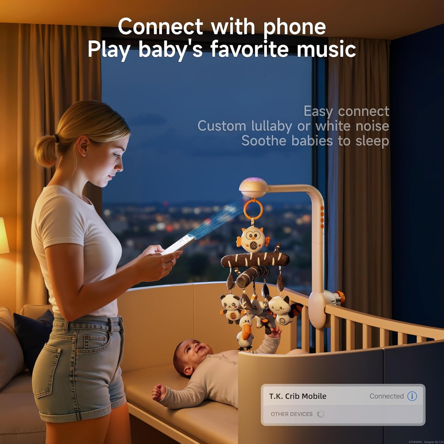 - Multifunctional Baby Crib Toys: Built-in multiple lights of different colors, multiple music (sleep music, nature sounds, piano music). The projector can project a starry sky scene with soft lights, and can also be used as a night light. Create a soothing sleeping environment for your baby.