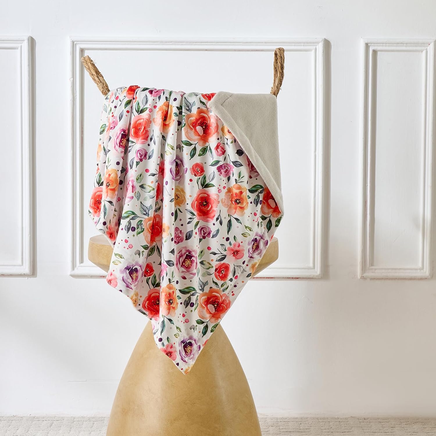 Baby Blanket 30x40 Inches Soft Double Layer Fleece Blanket with Beautiful Flower Print Gender Neutral Crib Blanket for Infant, Toddler, Newborn Baby Girl or Boy Shower Gift