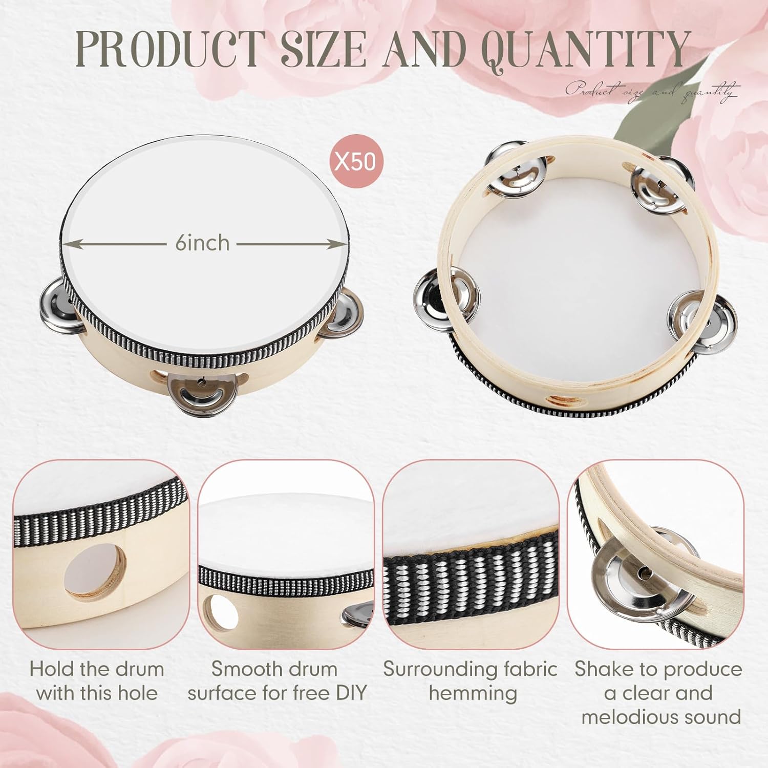 - Sufficient Quantity: you'll receive 50 pieces 6 inch tambourines for adults, providing ample quantity for wedding decorations, guest gifts, church events, and lively celebrations; Ideal for creating a joyful atmosphere on your special day