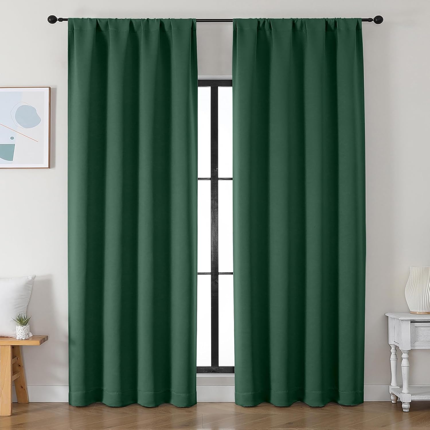 Simplebrand Ava Ever Green Blackout Curtains for Bedroom 90 Inches Long 2 Panels Set, Solid Privacy Energy Saving Living Room Window Treatment Curtains Blackout Drapes, W50 x L90 Inch, Ever Green