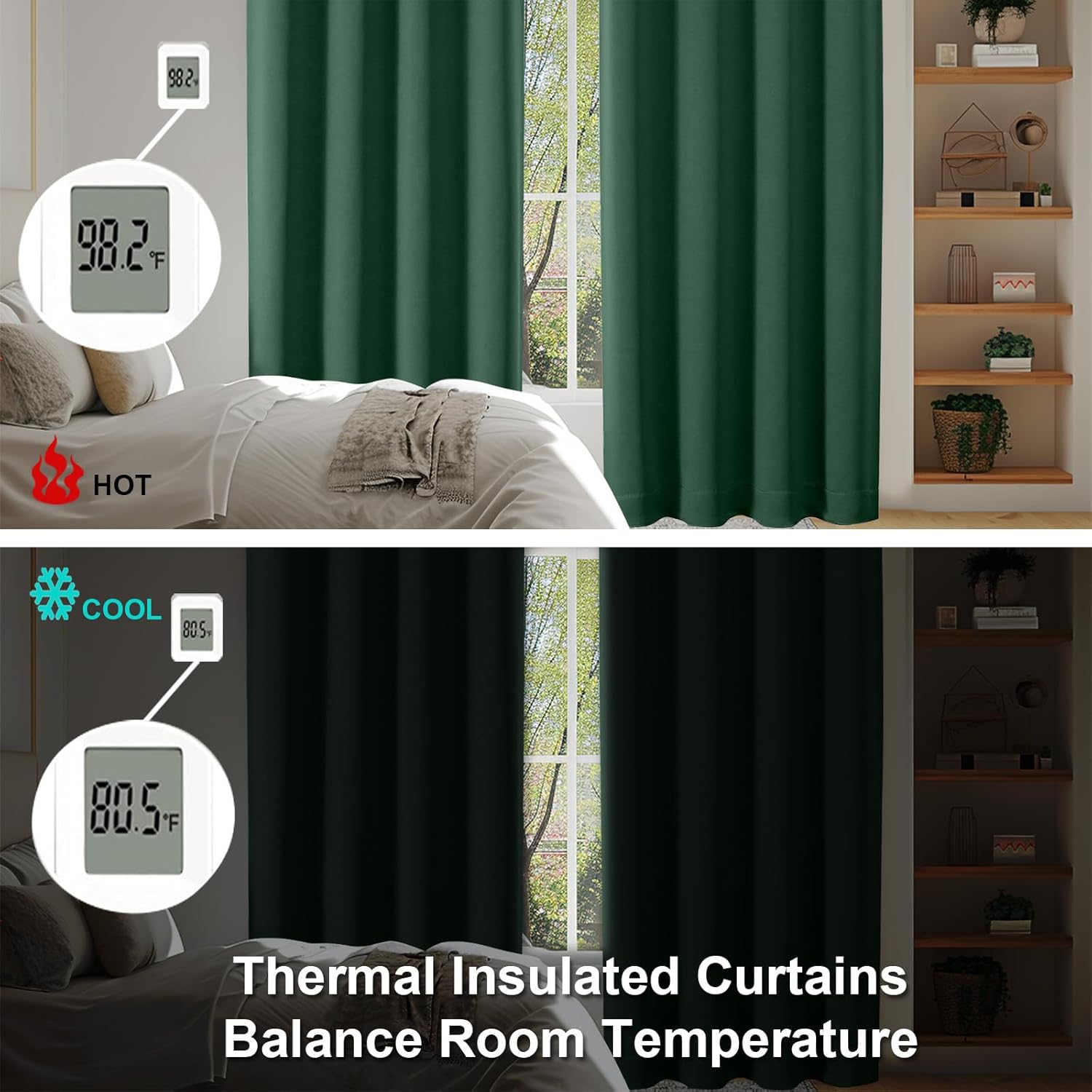 Simplebrand Ava Blackout Curtains for Patio 108 Inches Long 2 Panels Set, Solid Thermal Insulated Room Darkening Rod Pocket Window Treatment Curtains Blackout Drapes, W50 x L108 Inch, Ever Green