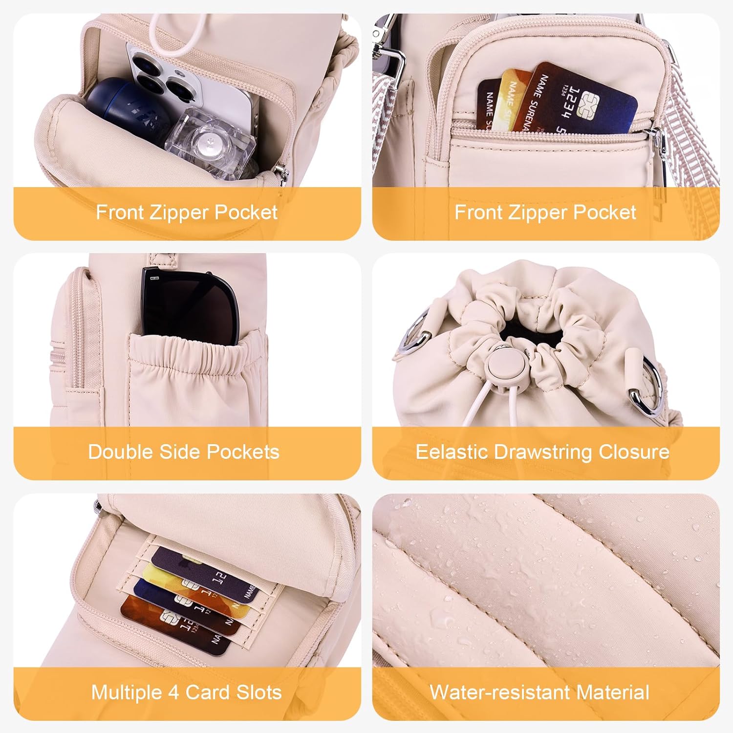 - 【 Functional Storage for Daily Essentials】 More than just a bottle holder—water bottle crossbody bag includes a zippered front pocket that fits large phones like the iPhone Pro Max, plus 4 built-in RFID card slots. Two side pockets easily store sunglasses, sanitizer, or other small essentials, making it perfect for everyday use.