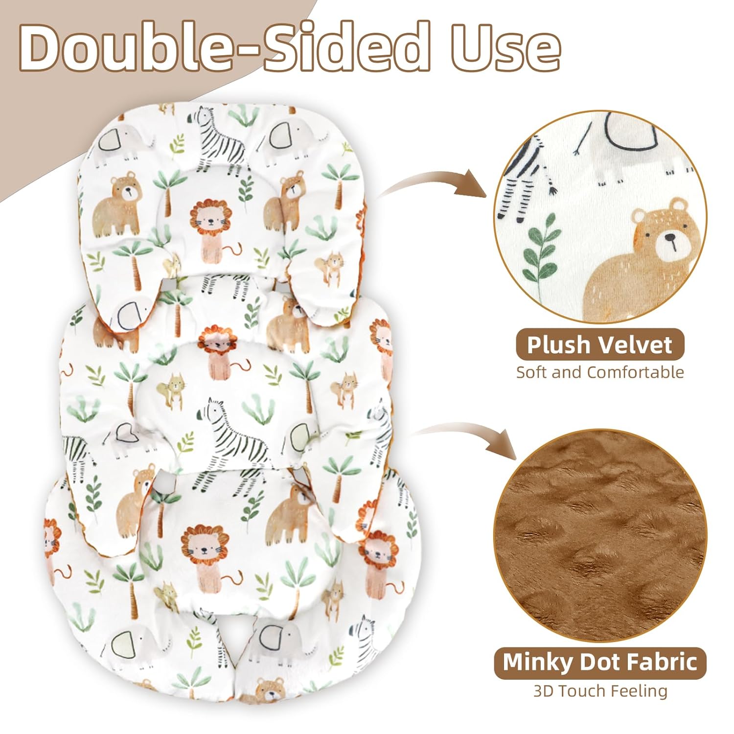 Infant Car Seat Insert Cushion, Baby Car Seat Head Body Support for Girls & Boys, Reversible Newborn Car Seat Insert with 2 Extra Strap Paddings, Premature Car Seat Cushion, Animal