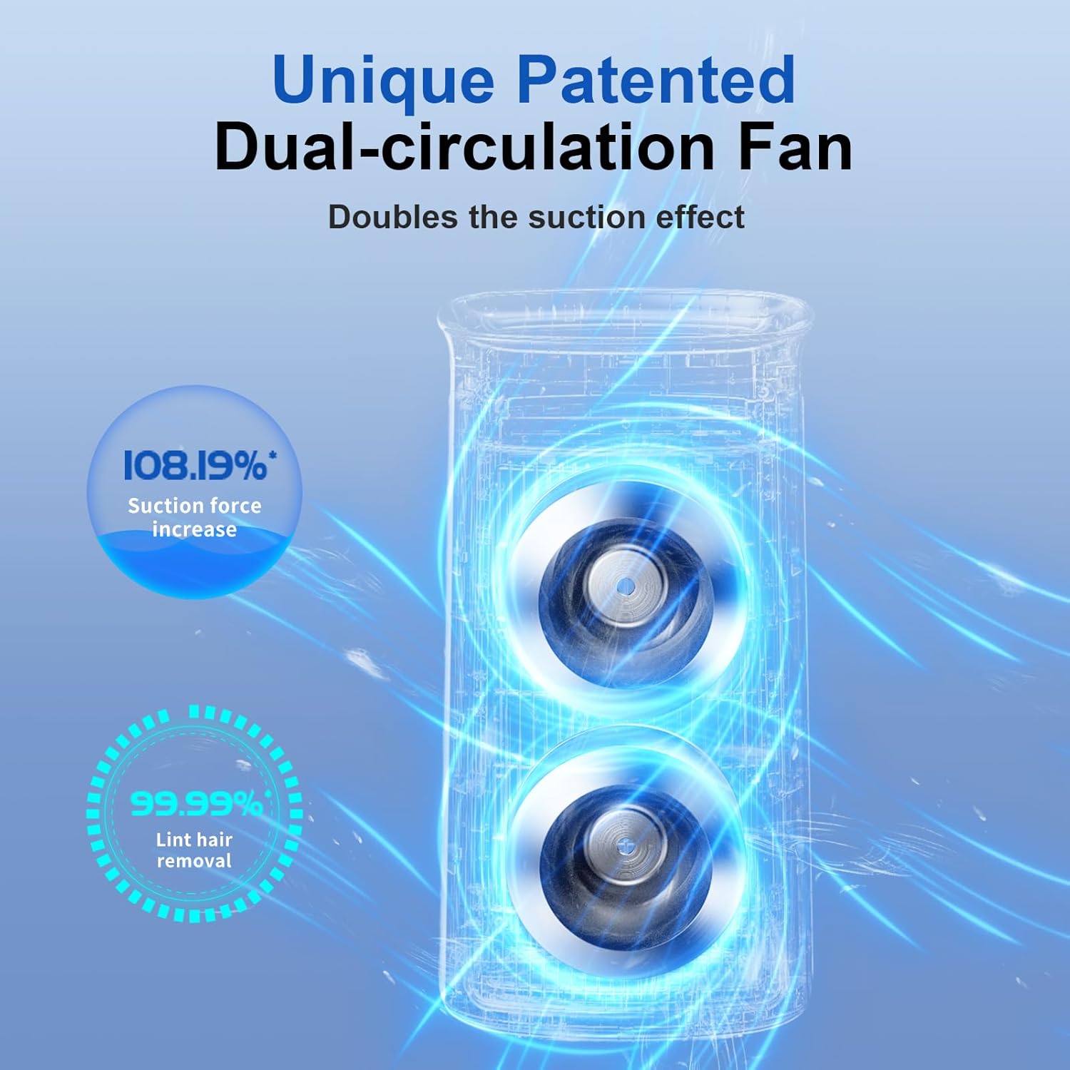 - Designed For Big Houses: SOLEUSAIR air purifier features a patented dual-circulation fan system that increases purification efficiency by 108.19% compared to single-fan models. With a maximum coverage of 4,000 sq. ft., it’s ideal for large spaces like schools, hospitals, bedroom, hotels, offices, and spacious living areas.It purifies a 4,000 sq. ft. home in just 1 hour.