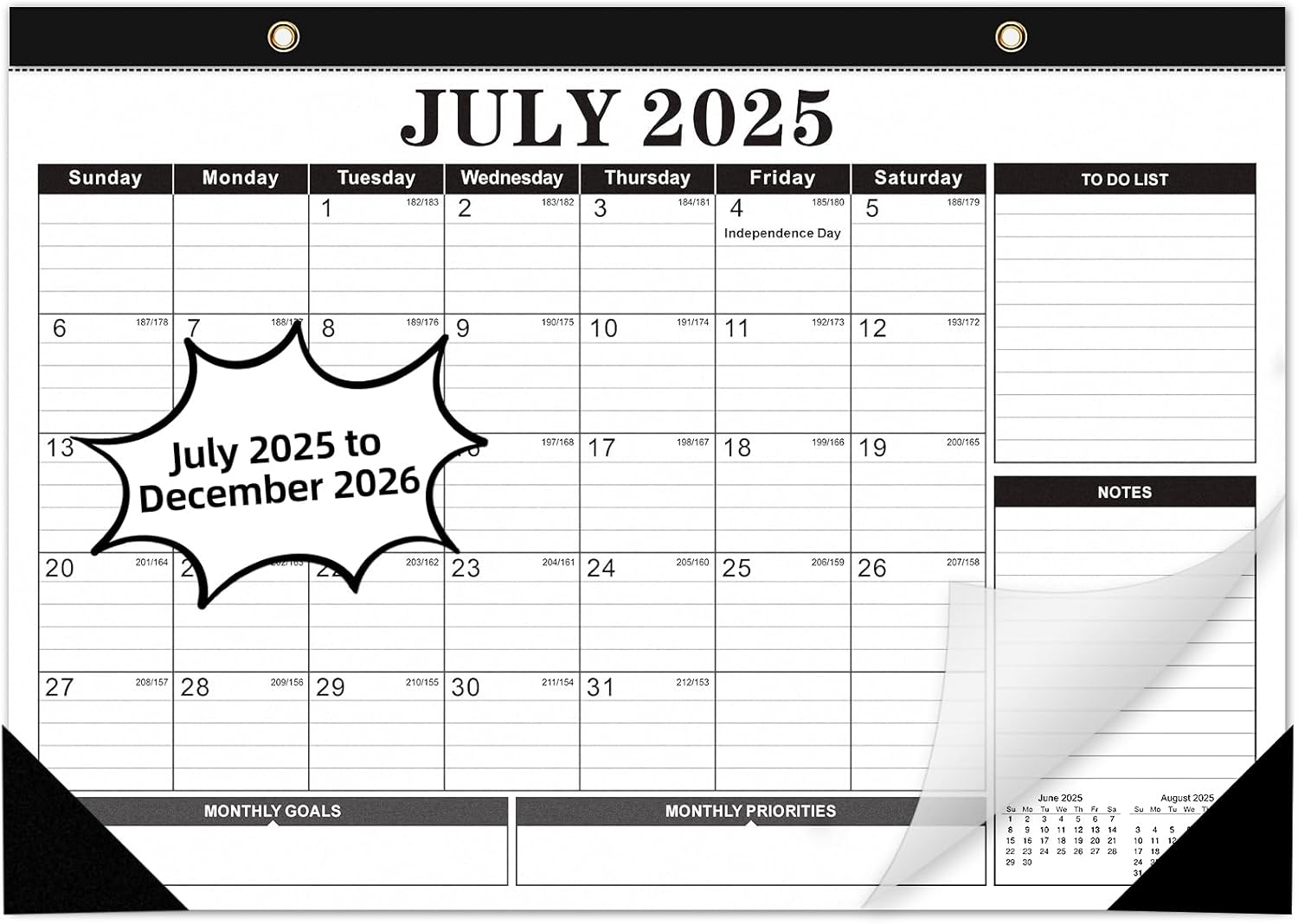 Tcamp Desk Calendar 2025-2026 from July 2025 to December 2026, Large 17" x 12" Wall Calendar with Julian Dates, 18 Months Desk Planner for Home School Office Desktop, Christmas Gifts