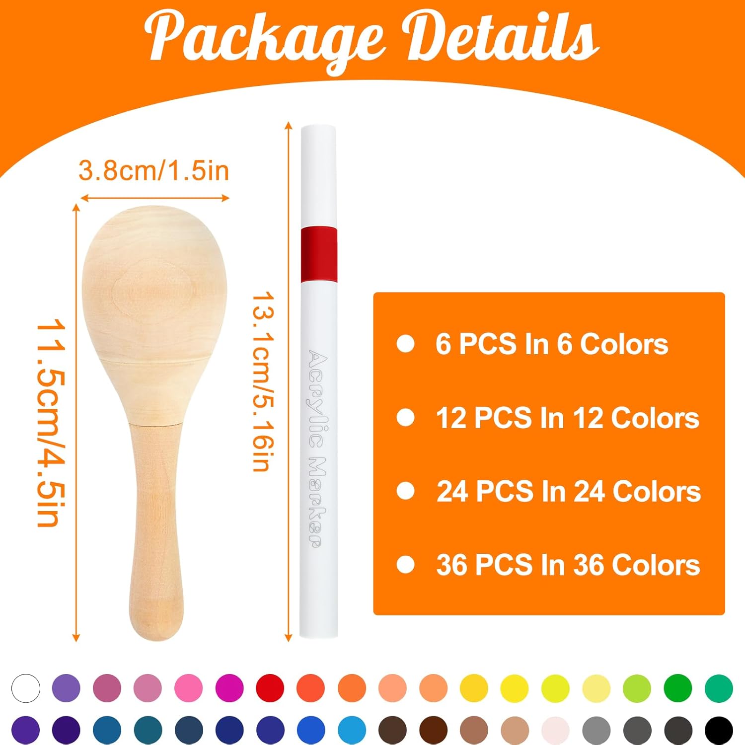 - Unfinished DIY Set: You will get 12 pieces of blank wooden maracas and 12-color quick-drying pens, enough for you to get creative and DIY to celebrate Mexico Day, birthdays and other holidays