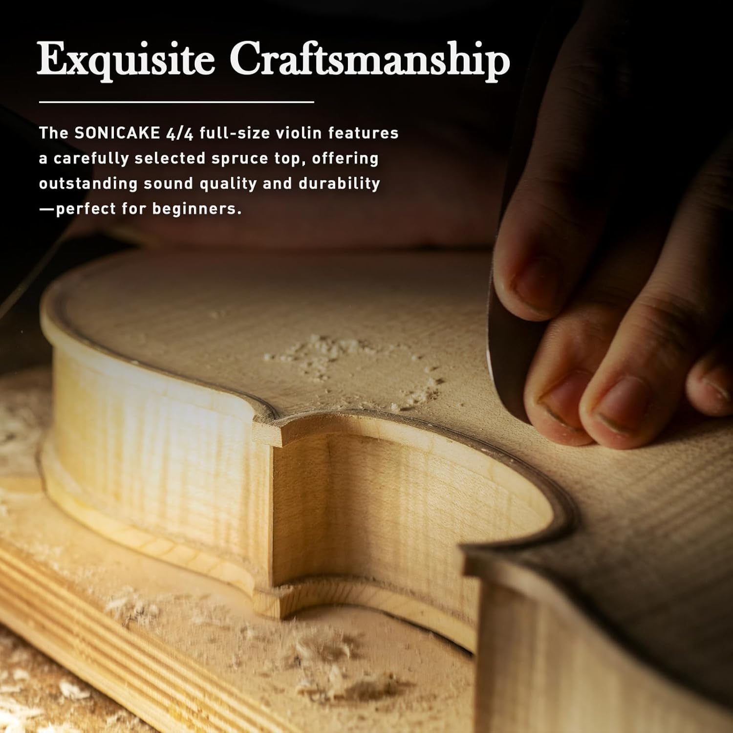 - The Sonicake QVL-01 4/4 full size violin is made of spruce wood panels, maple backboards and side plates. It is cut from a complete piece of wood with clean timbre and stable sound.