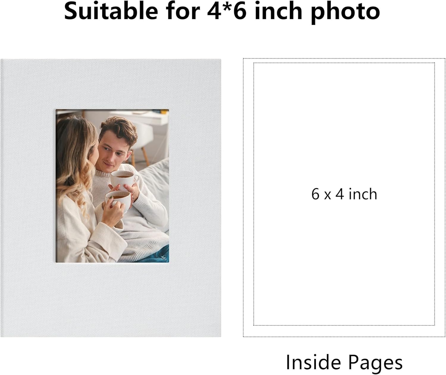 Small 4x6 Photo Album 24 Pockets Linen Cover with Front Window Portable Mini Picture Book for Travel Wedding Memories Organizer White