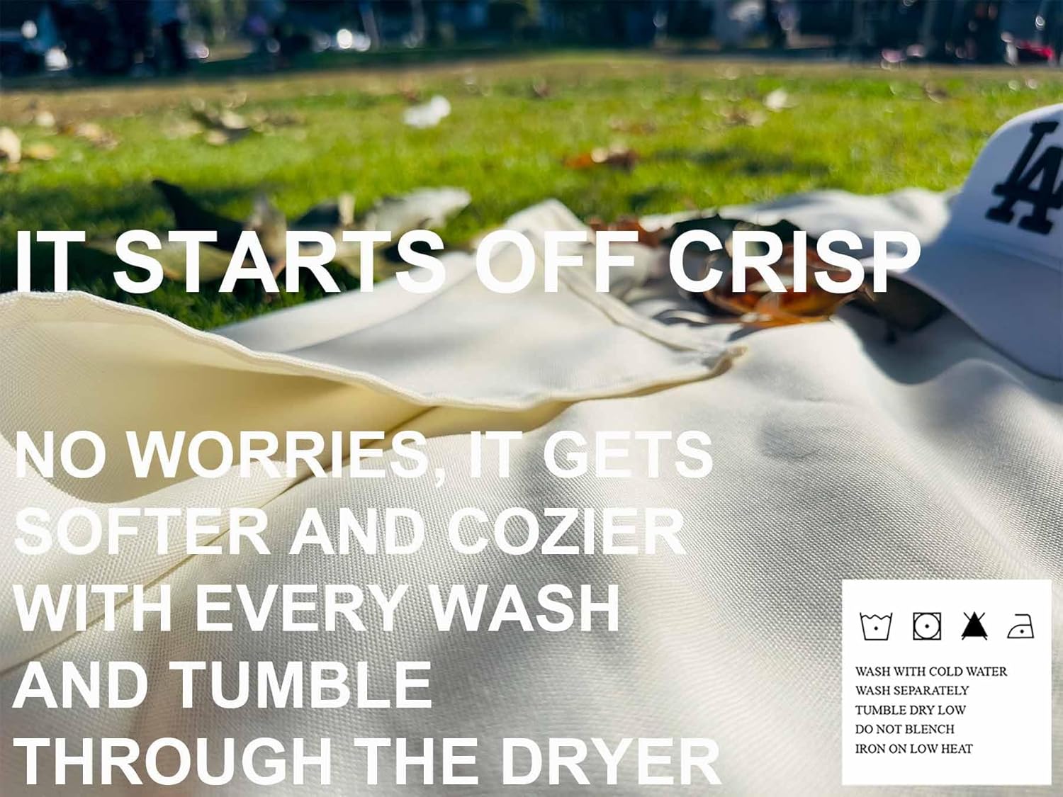 4’9” x 6’3” White Lightweight Water-Resistant Canvas Mat – Picnic, Outdoor, Beach, Park, Camping, Toy Mat