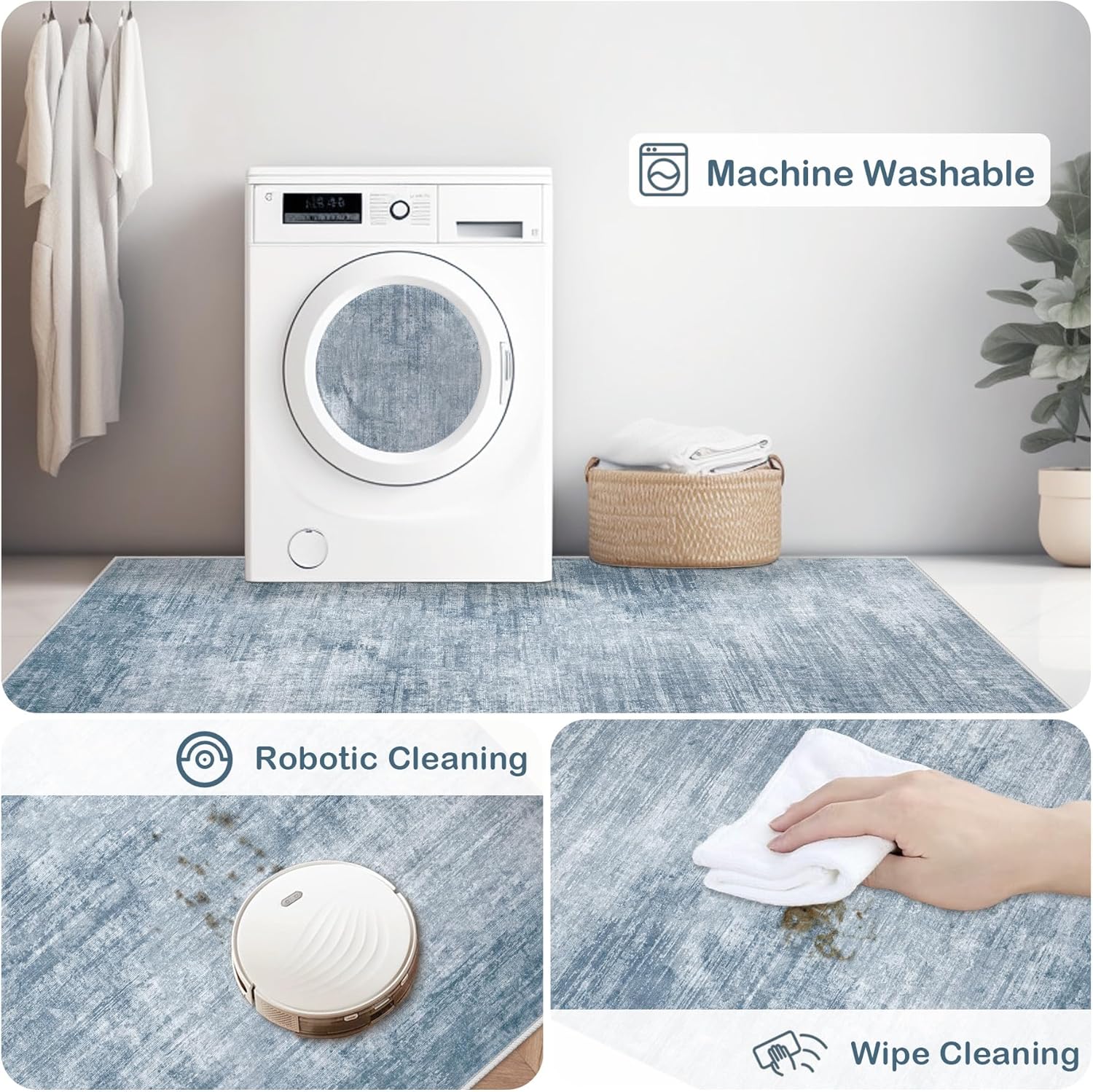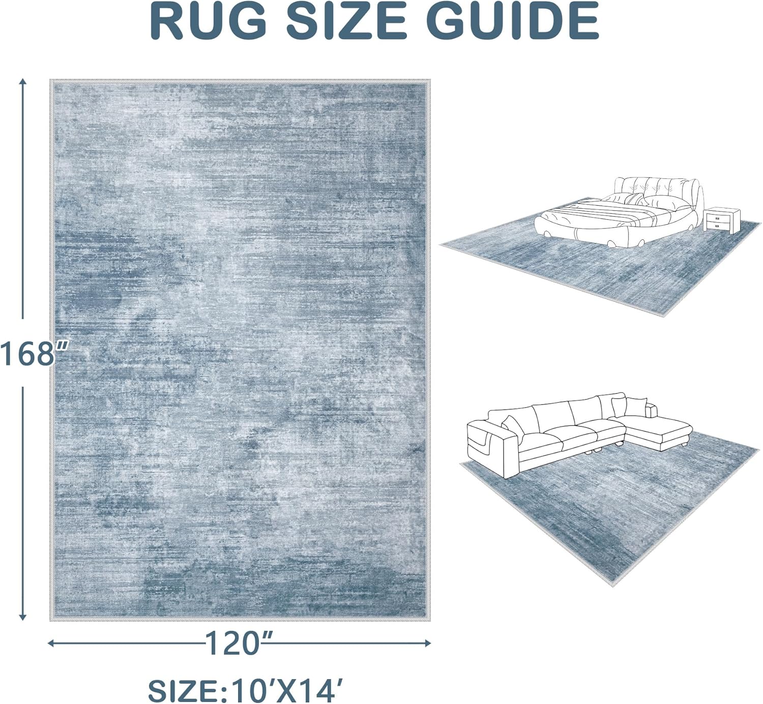 Area Rugs 10x14 Living Room: Washable Rug Modern Abstract Large Rugs Soft Non Slip Neutral Rug Stain Resistant Indoor Carpet for Bedroom Kitchen Dining Room Home Office Rugs(Blue, 10'x14')