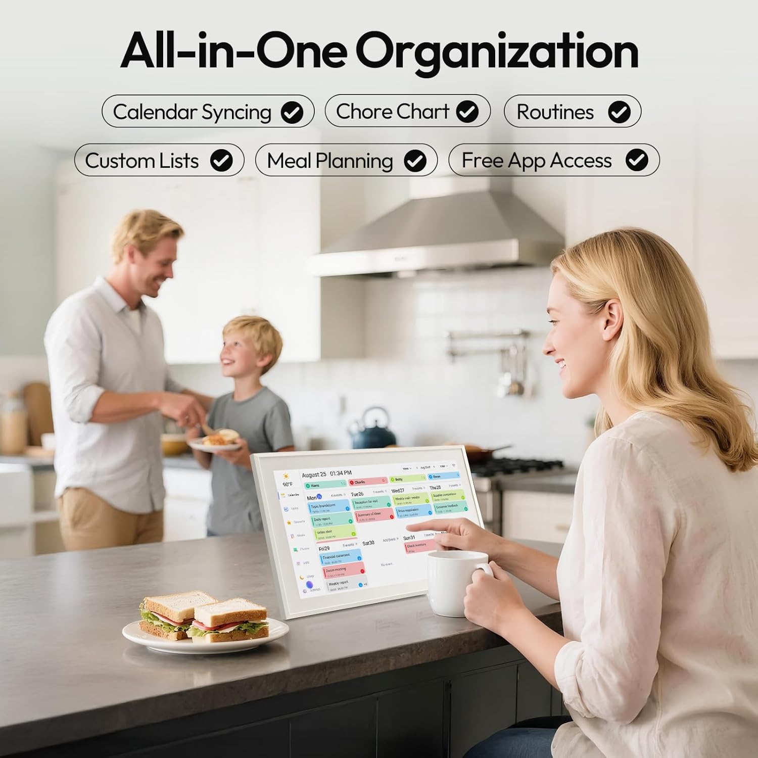 - [Charming Digital Picture Frame] When not in use, your smart calendar transforms into a beautiful digital picture frame. Showcase treasured family photos on the large screen, adding a touch of elegance to any room as modern home decor.
