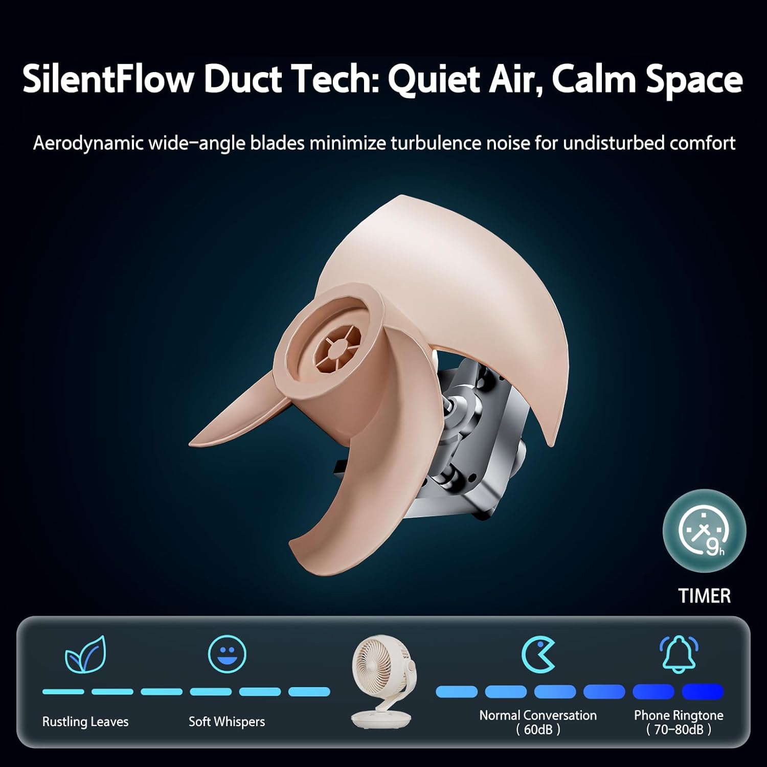- Compact & Portable Design:9.84 x 7.99 x 11.93 inches,Lightweight (1.3kg) with 120°& 90° oscillation to cool every corner of your bedroom, office, or desk.