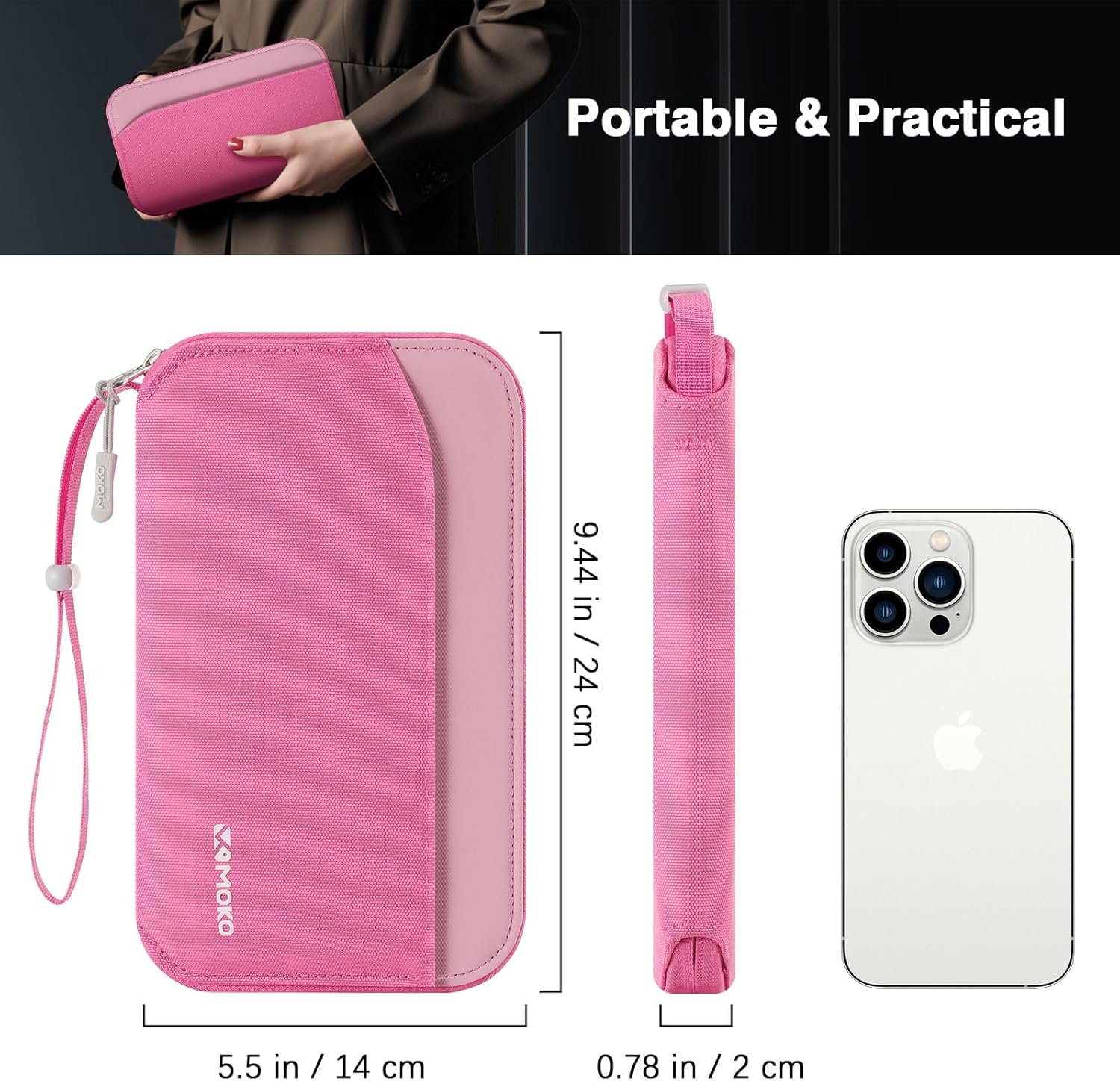 MoKo Passport Holder Family for Men and Women, RFID Travel Passport Wallet with Multiple Compartments, Travel Document Organzier for Cards, ID, Tickets, Keys, Pink