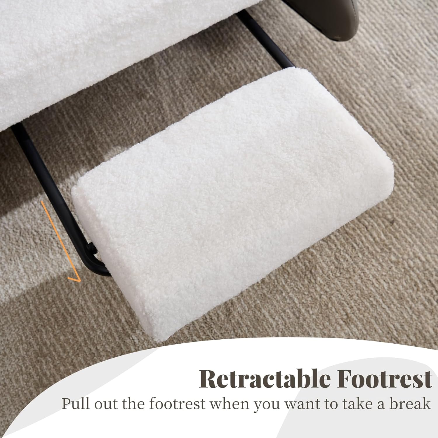 Nursery Rocking Chair, Teddy Upholstered Glider Rocker Modern Accent Chair Padded Seat with High Backrest,Comfy Side Chair for Nursery,Living Room Bedroom Offices, White