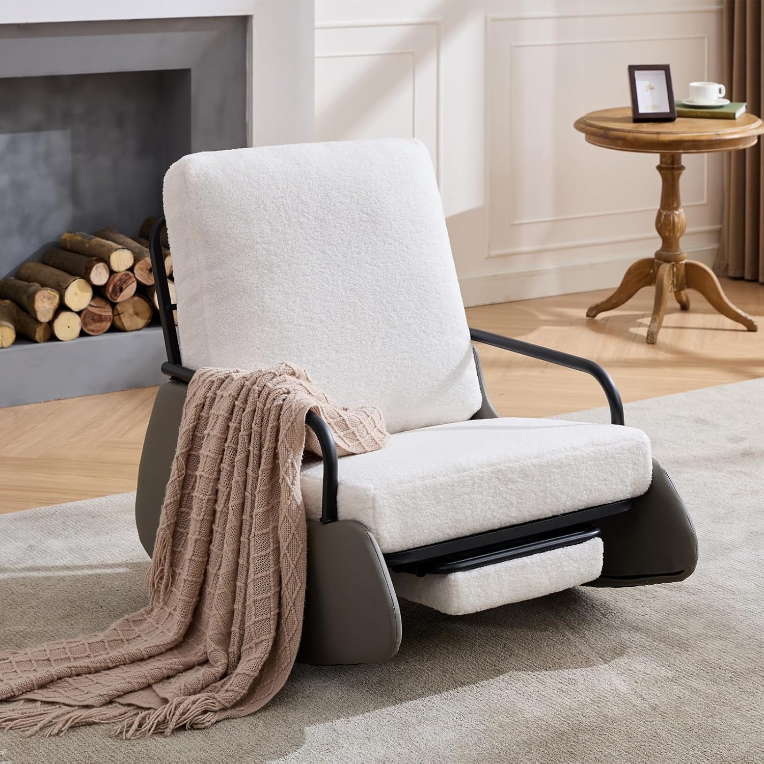 - Super Comfortable: The backrest is ergonomically curved, upholstered with soft, fluffy,skin-friendly luxuriousTeddy fabric that is gentle and non-irritating to the touch. The surface of the baby rocking chair is breathable and easy to maintain, the seat cushion and backrest are generously filled with sponge to ensure optimal comfort when seated. Durable and won't fade,wrinkle or pill over long periods of use.