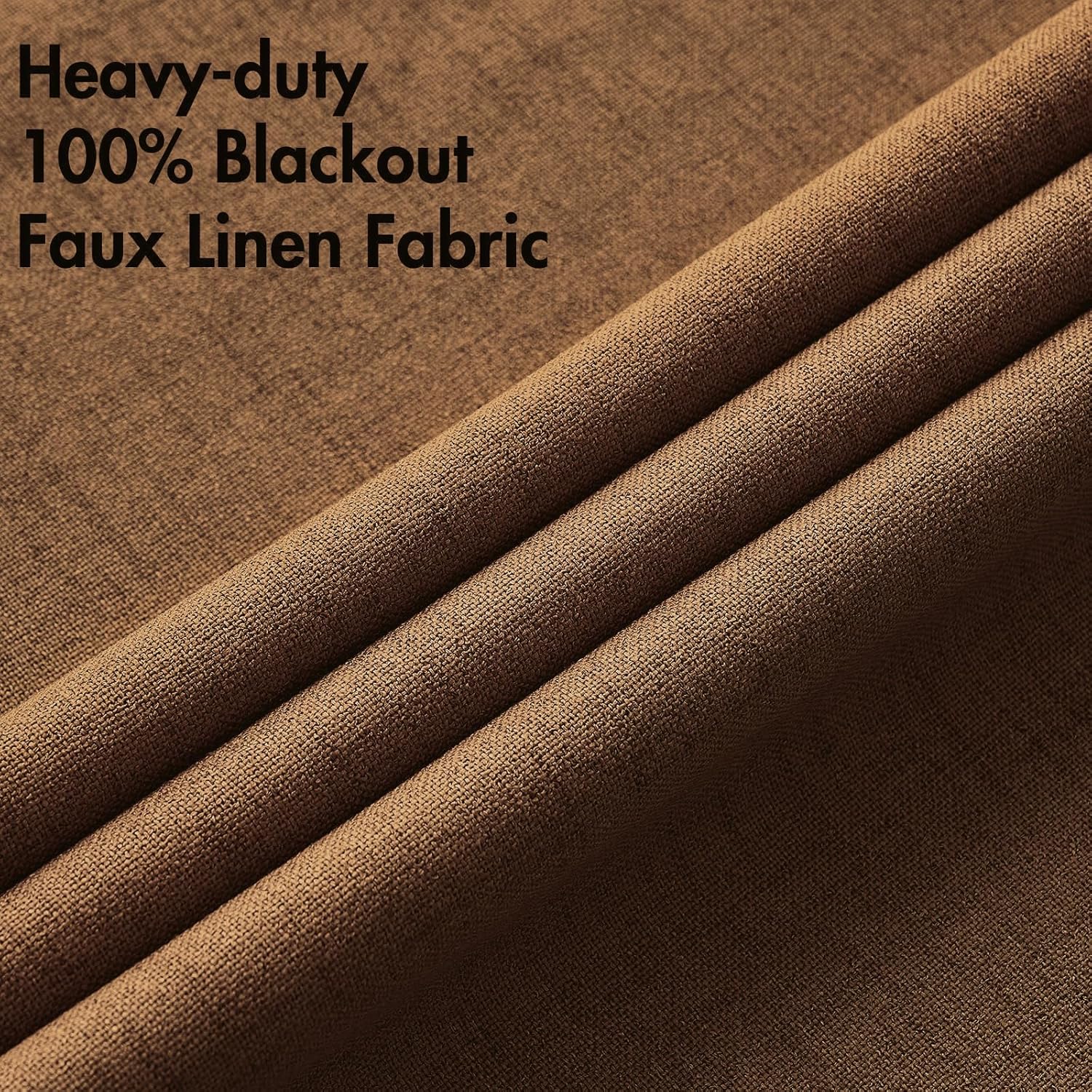 MIULEE Linen Curtains for Bedroom 100% Blackout Thermal Insulated Brown Grommet Room Darkening Curtains & Drapes Fall Decor for Living Room Nursery 52 x 54 Inch (2 Panels)