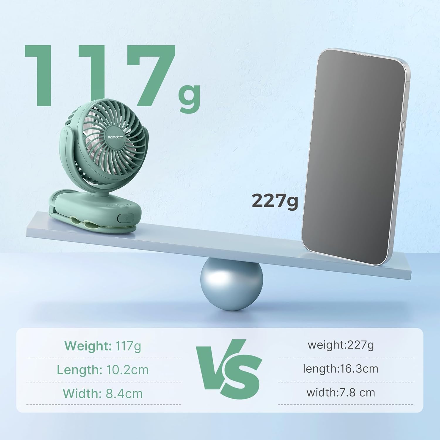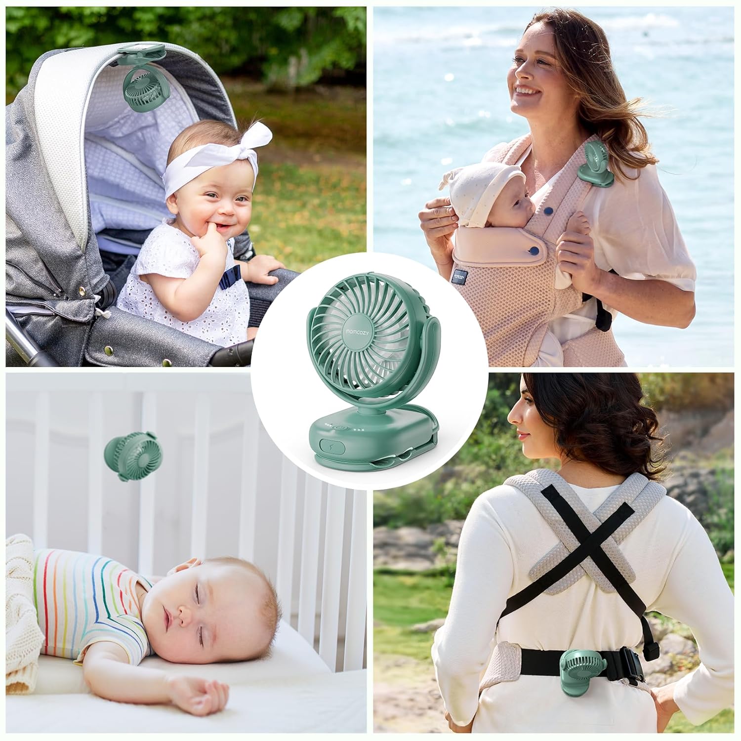 Momcozy Portable Fan with Clip | 4-Speed Mini-Fan for Carrier | Personal Fans Ultra Lighter 0.26lb | Gaps ≤4.5mm | Handheld Cooling | Rechargeable Rotate for Diaper Backpack/Stroller/Carrier/Chair