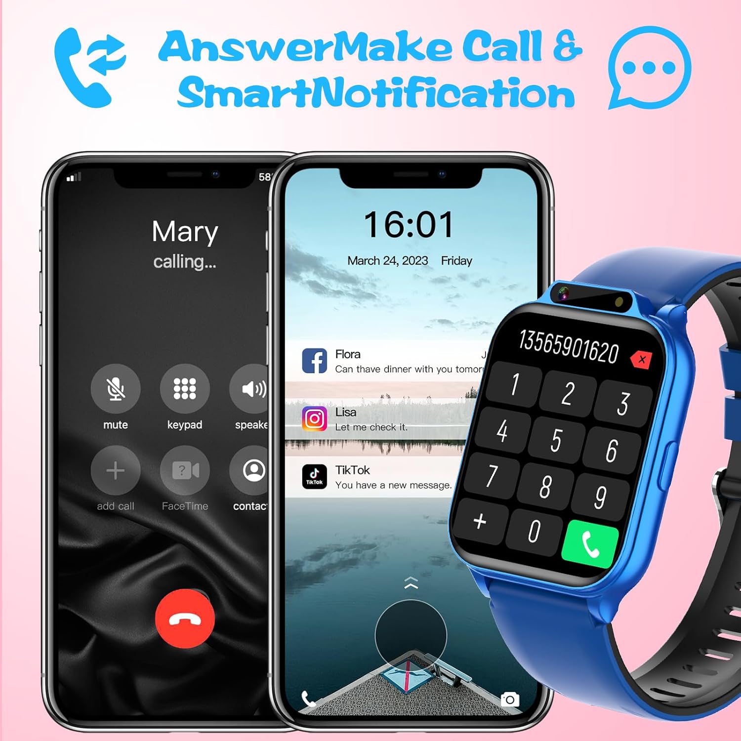 - 【IP68 Waterproof & Durability】This kids watch built with a sturdy stainless steel case(1.5-meter drop tested) and IP68 waterproofing for storms/pool play. Smart Watch for Kids Teens Automatically counts steps, distance, calories burned, and active minutes and Supports 100+ sports modes.