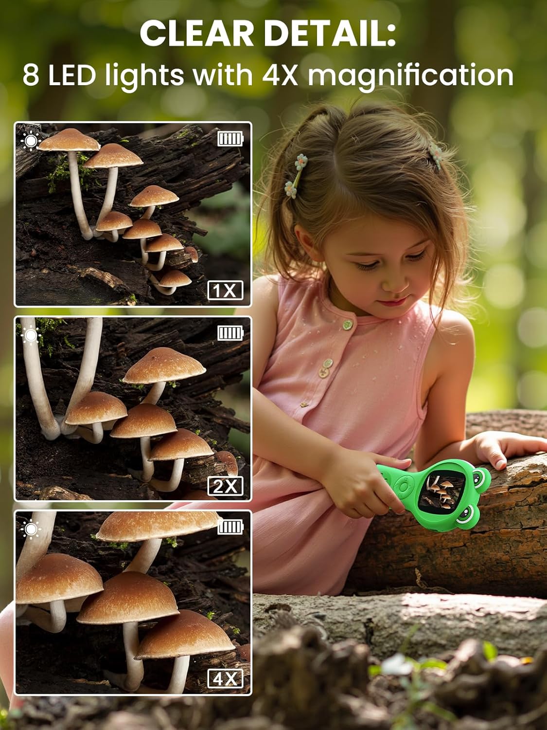 - 200W High Definition Pixels: 2-inch IPS color screen with 500x magnification and 4x zoom, high definition allows kids to take a closer look at the veins of plants, the shape of stamens, the wings of insects, the composition of stamps, and start an exciting journey of microscopic exploration