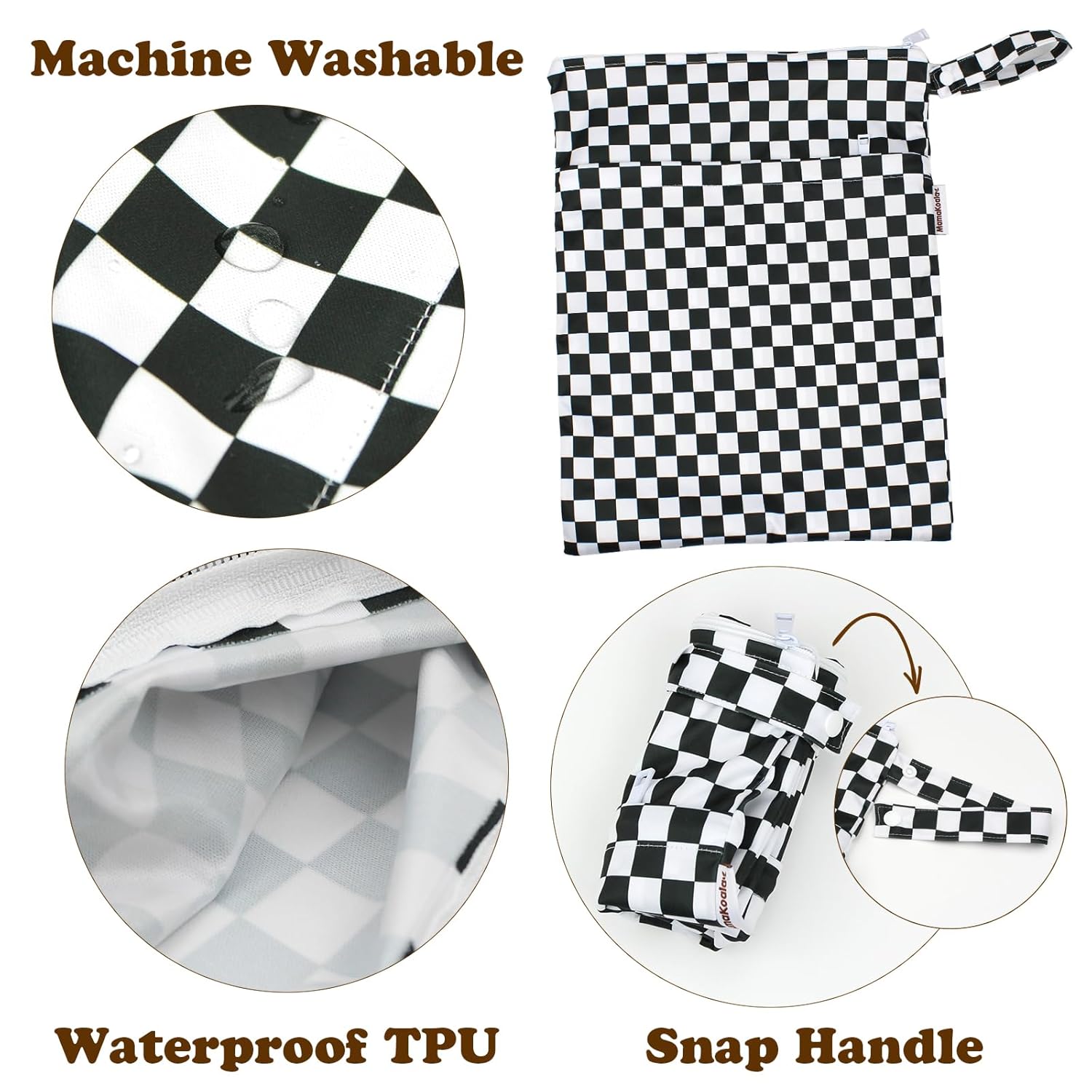 - TWO ZIPPERED POCKET DESIGN - This all in one baby wet bags have two separate TPU-lined compartments with individual zippers and a loop handle with a snap. Zippered compartments to accommodate your wet and dry items at the same time while keeping them separate.