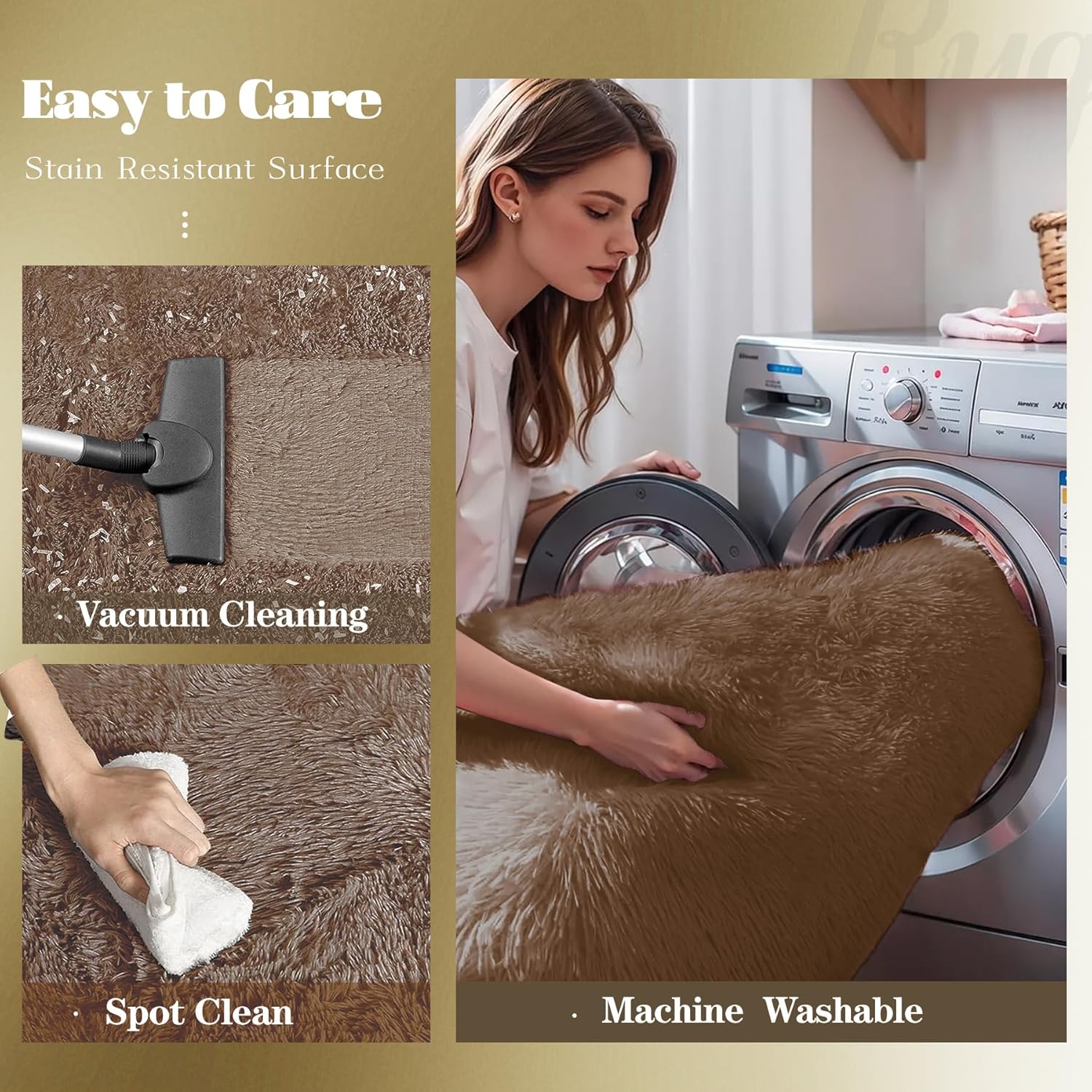 8x10 Area Rug for Living Room: Fluffy Shag Soft Washable Rugs Large Fuzzy Plush Indoor Carpet for Bedroom Nursery Playroom Kids Girls Boys Room (Coffee, 8'x10')