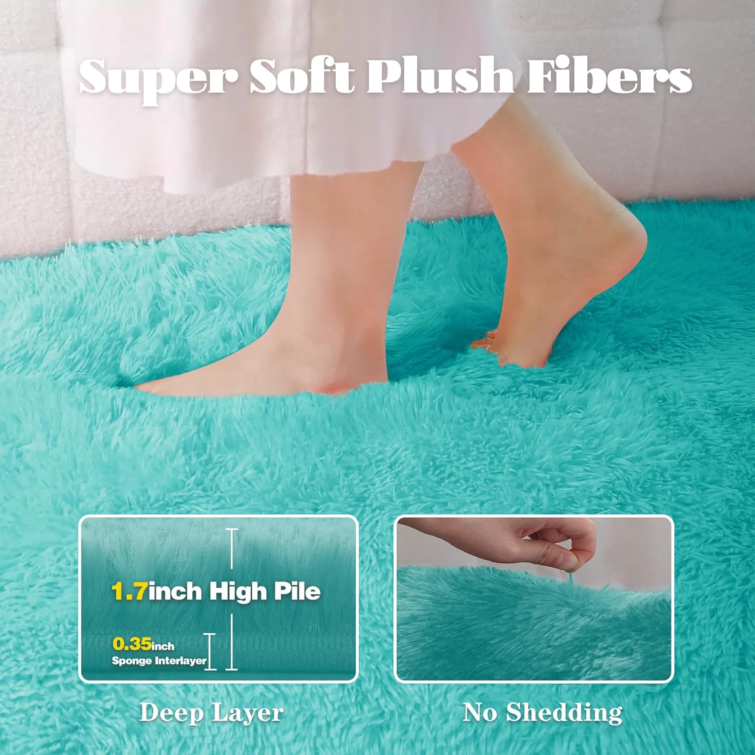 8x10 Area Rug for Living Room: Fluffy Shag Soft Washable Rugs Large Fuzzy Plush Indoor Carpet for Bedroom Nursery Playroom Kids Girls Boys Room (Teal Blue, 8'x10')