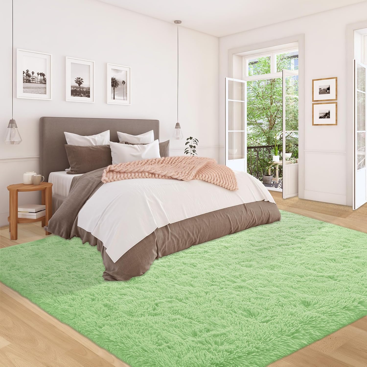 5x8 Area Rug for Living Room: Fluffy Shag Soft Washable Rugs Fuzzy Plush Indoor Carpet for Bedroom Nursery Playroom Dorm Kids Girls Boys Room (Sage Green, 5'x8')