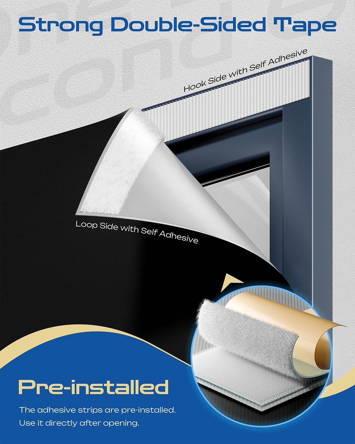 - Upgraded Hook & Loop Installation - Featuring industrial-grade Hook & Loop tape, no drilling or professional tools are needed. Simply fix the patches on the window frame (suitable for both flat and curved surfaces), align the window curtains, and press to complete the installation in just a few minutes. For creases, iron at 120℃–150℃ with a cloth to maintain the durability of the fabric and fastener