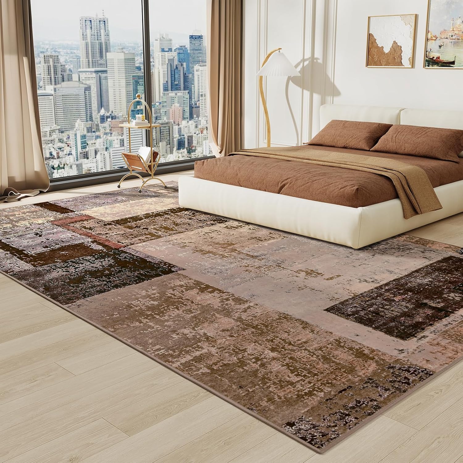 LOCHAS Rug for Living Room, Washable Soft Area Rugs for Bedroom 8x10, Abstract Carpet for Indoor Office Kids Dining Room Nursery Floor, Brown Geometric Vintage Home Decor, Non Slip, Pet Child Friendly