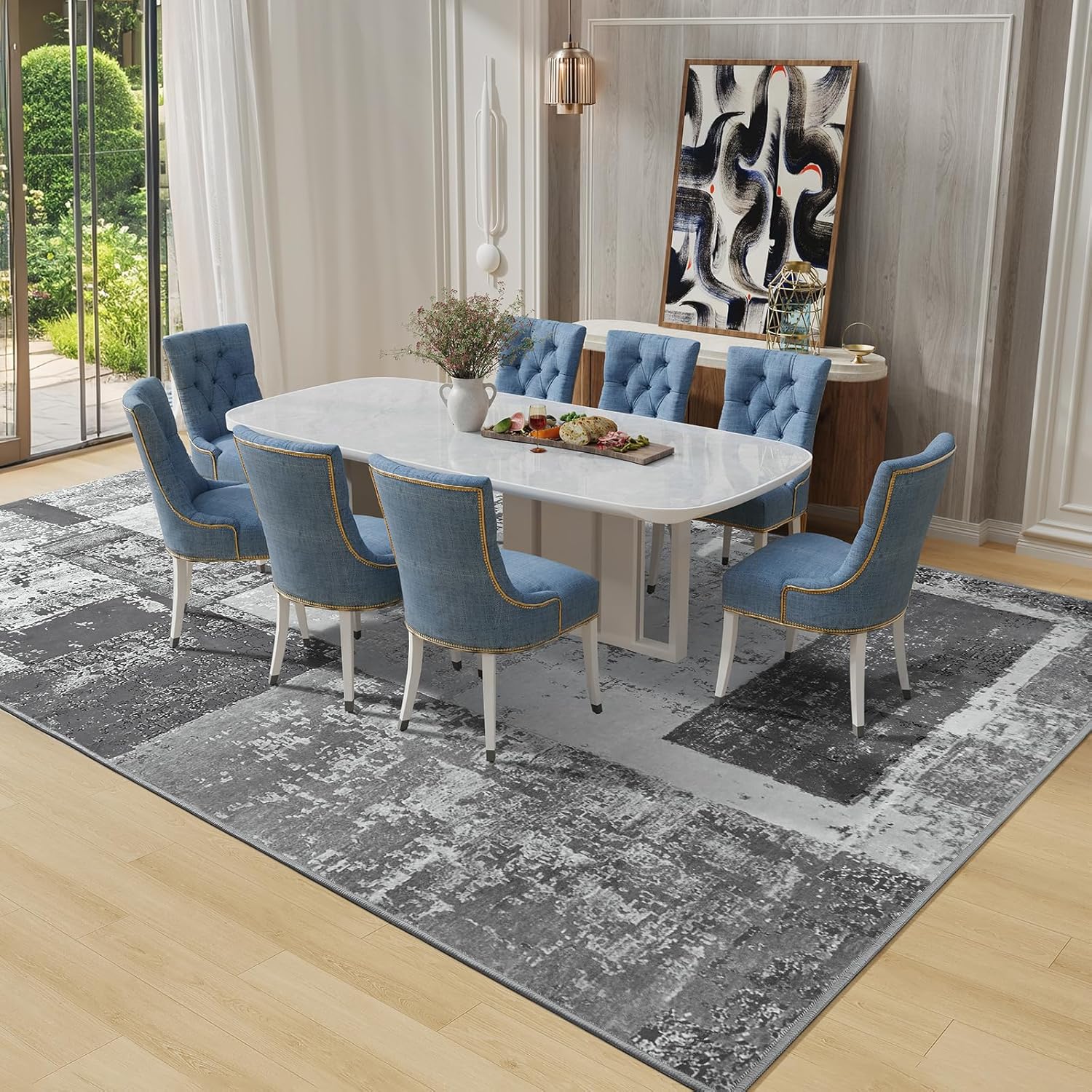 LOCHAS Rug for Living Room, Washable Soft Area Rugs for Bedroom 6x9, Abstract Carpet for Indoor Office Kids Dining Room Nursery Floor, Grey Geometric Vintage Home Decor, Non Slip, Pet Child Friendly