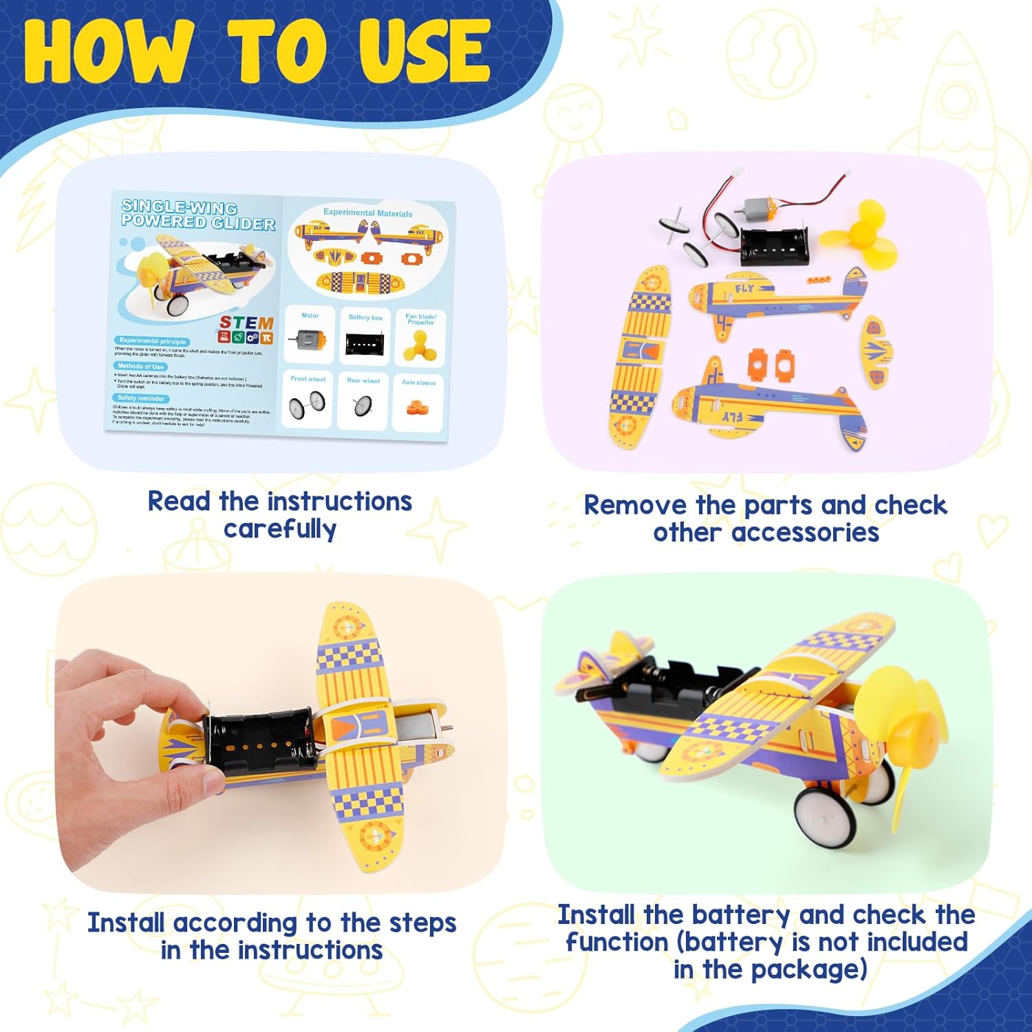 - 4 STEM Kits — Single-Wing Powered Glider, Obstacle-Avoiding Robot, Tank & Mechanical Caterpillar. This hands-on science kit for kids age 8-12 includes four DIY models that blend fun and learning.