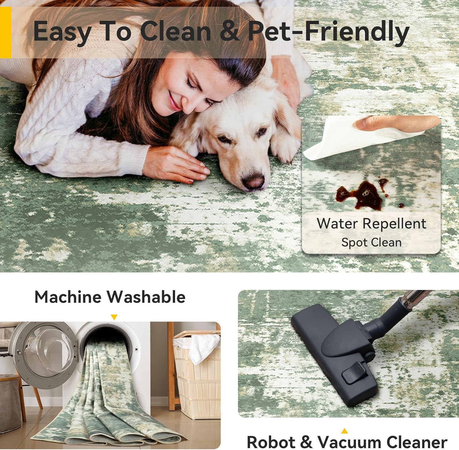 Washable Area Rugs 6'x9' Non-Slip Modern Abstract Soft for Living Room Entryway Bedroom Nursery, Print Pattern, Light Green/Yellow