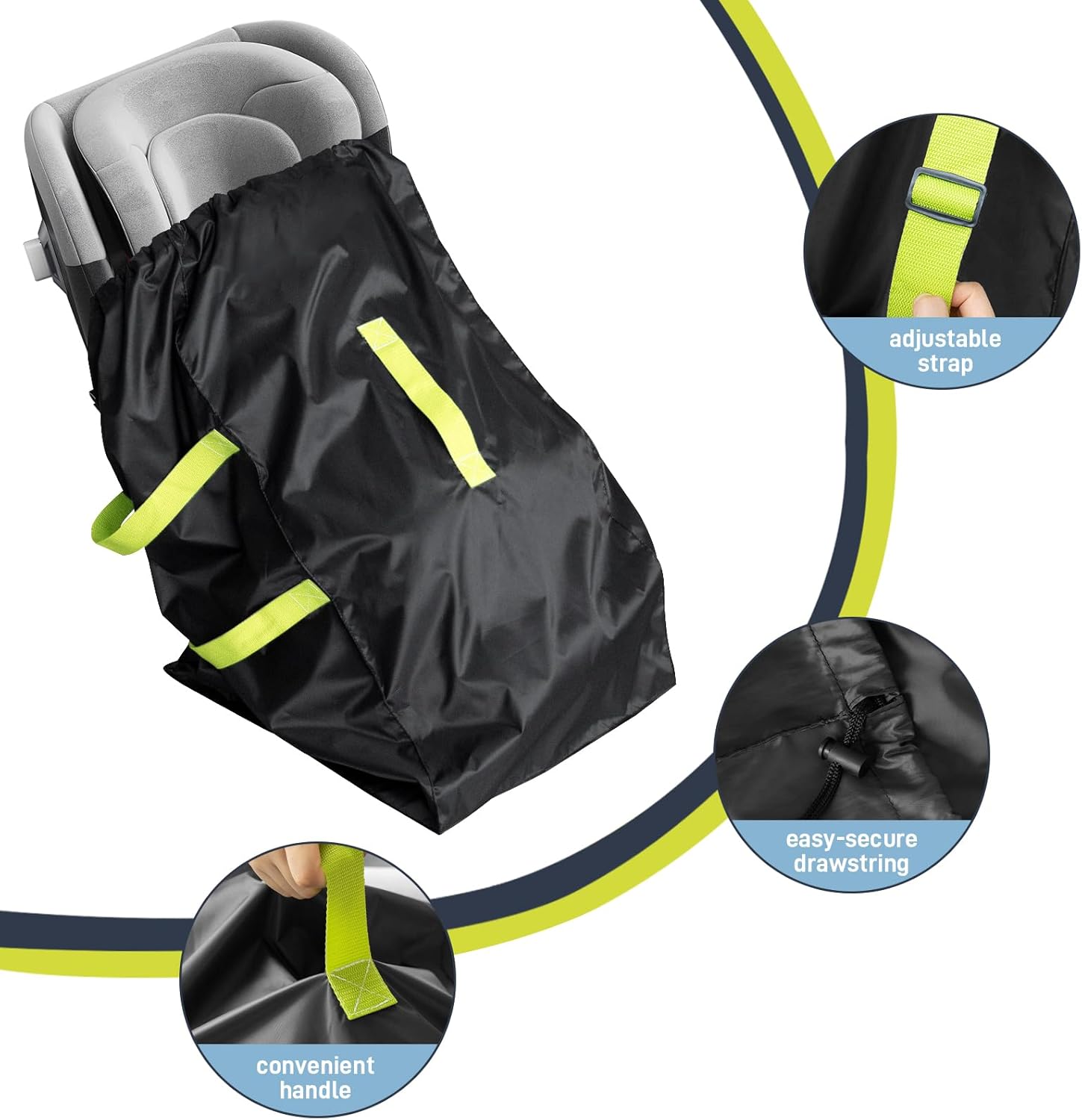 - Comfortable & Adjustable: Our travel car seat bag features adjustable breathable shoulder straps with generous sponge padding to ease the stress on your shoulders, ensuring comfortable wear during airplane gate check-in. Several thick handles and straps make lifting the bag easy and allow you to carry it in the way that is most comfortable for you; The strength of the handles are reinforced for heavy duty, which makes lifting and carrying much easier, and also makes it much more safe when we are carring or draging the bags with our carseat.