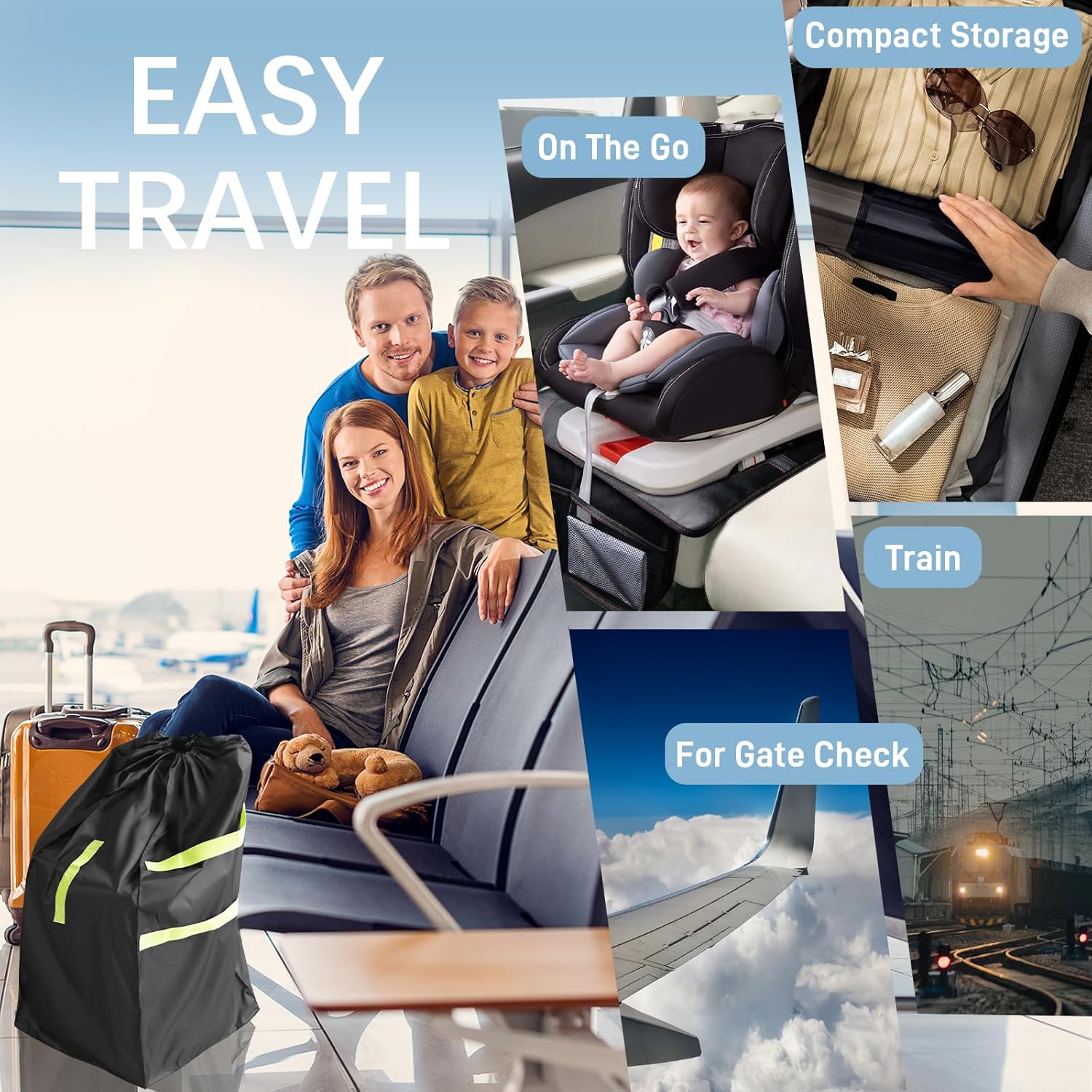 - Durable & Lightweight: The carseat travel bag is made of thick tarp and water-resistant material, which makes it more durable than those plastic bags, It's designed to withstand luggage weight up to 45 pounds, making it the ideal car seat travel bag.