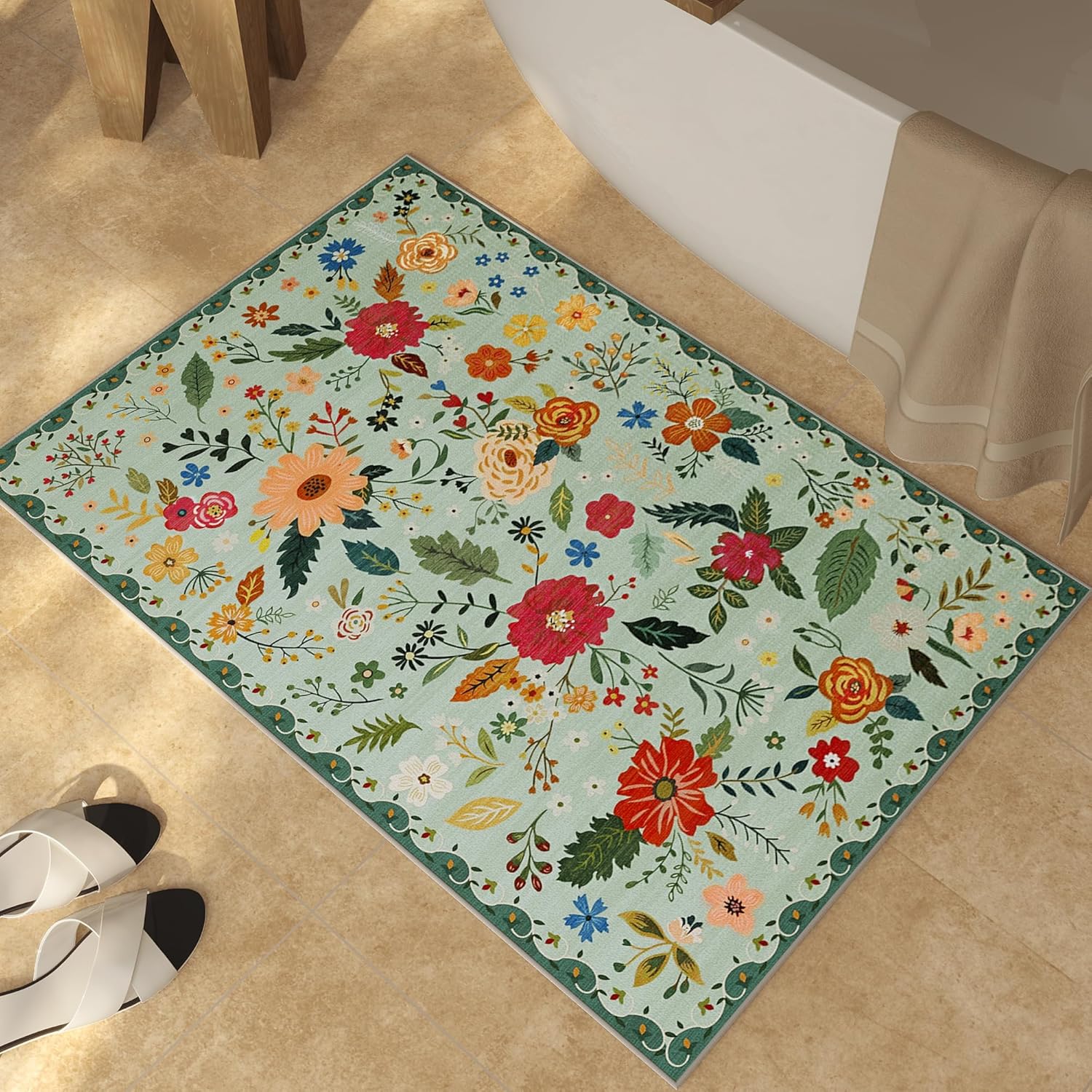 - FLORAL DESIGN: Bring timeless charm to your space with this vintage-inspired floral rug, available in multiple colors to complement any decor style. The advanced digital printing creates sharp patterns with vibrant colors, instantly adding warmth and life to your living space. Wash after wash, this rug keeps its colors as vibrant as day one.