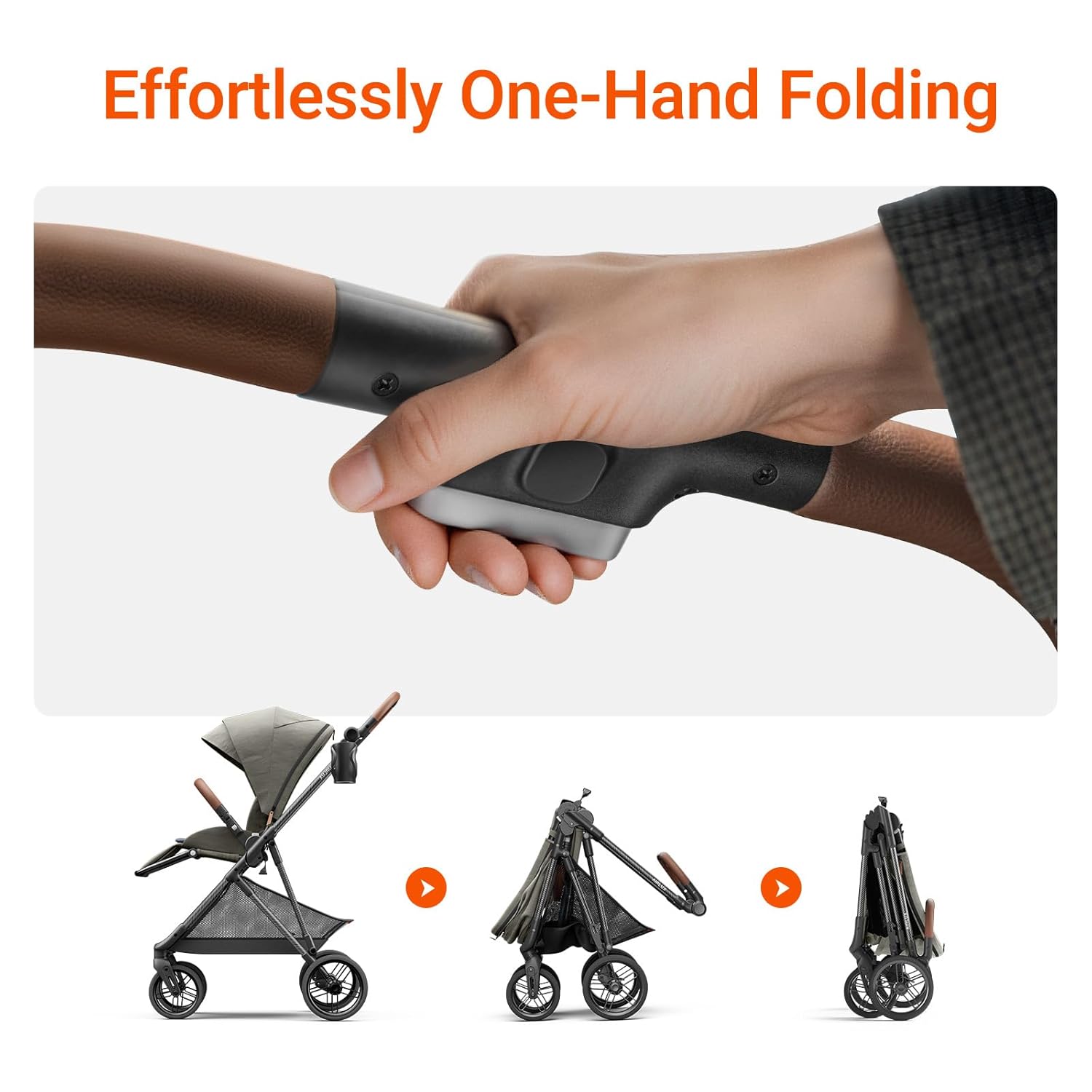 Air Lux Baby Stroller with Carbon Fiber Frame, One-Hand Fold & Reversible Seat, Magnetic 5-Pt Harness, Car Seat Adapter, 15.8lbs, Vetiver
