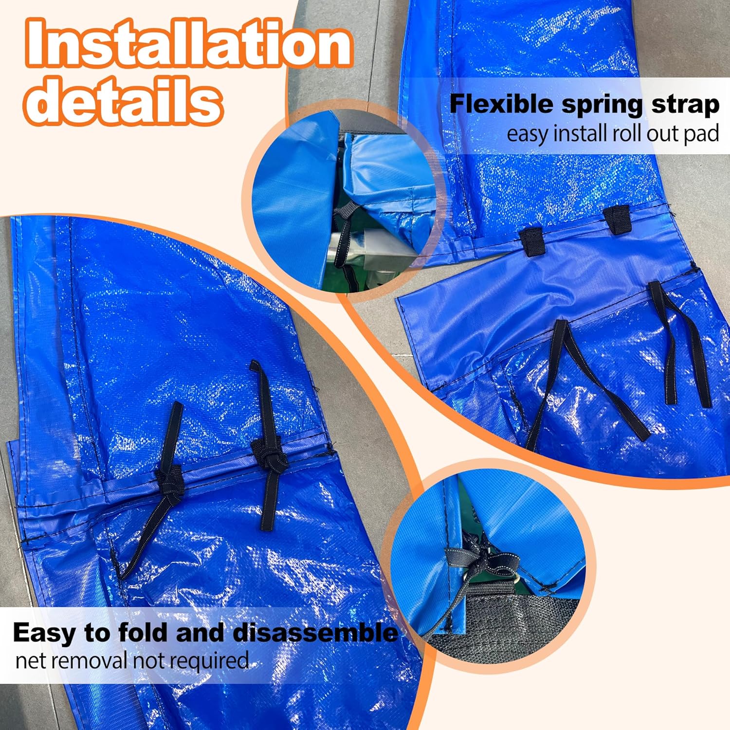 - 【Enhanced Safety Features】Equipped with UV-resistant and waterproof properties, this mat withstands outdoor elements, ensuring durability and safety during play. The reinforced perimeter stitching and durable attachment points guarantee a secure fit to the trampoline frame.