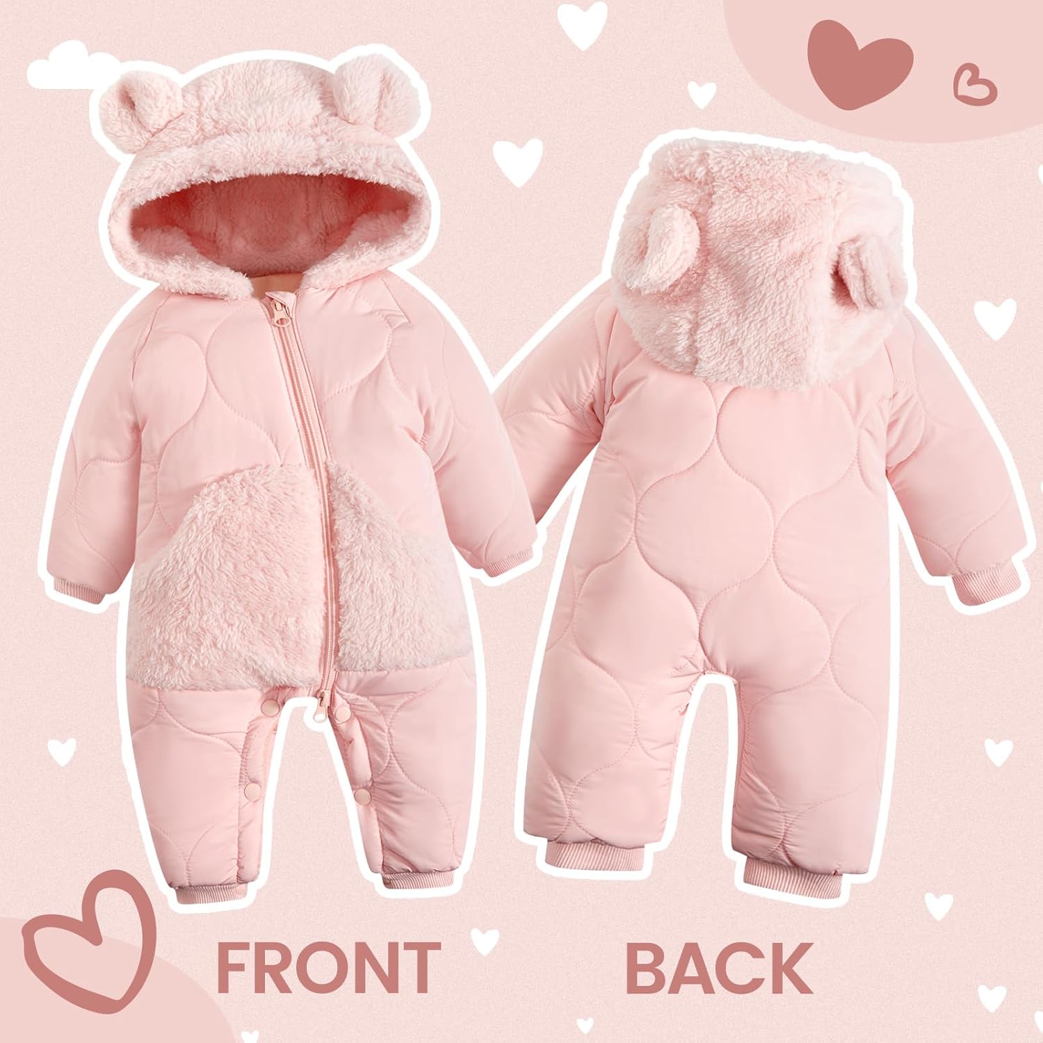 • [🐻Perfect for Winter Outdoor]: Don't cancel outdoor fun! This baby snowsuit enables stroller walks, park play, and snowy explorations. This newborn snowsuit doubles as holiday attire for Christmas or birthday parties. Trusted winter clothes for baby girls and boys.