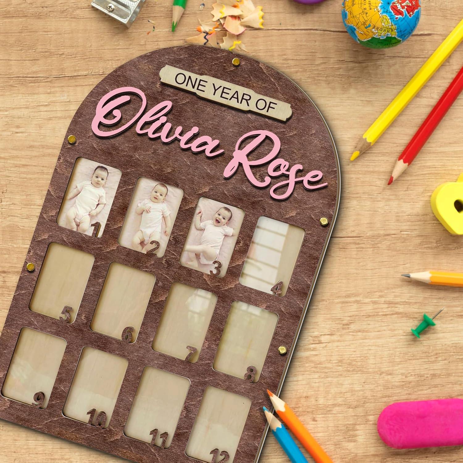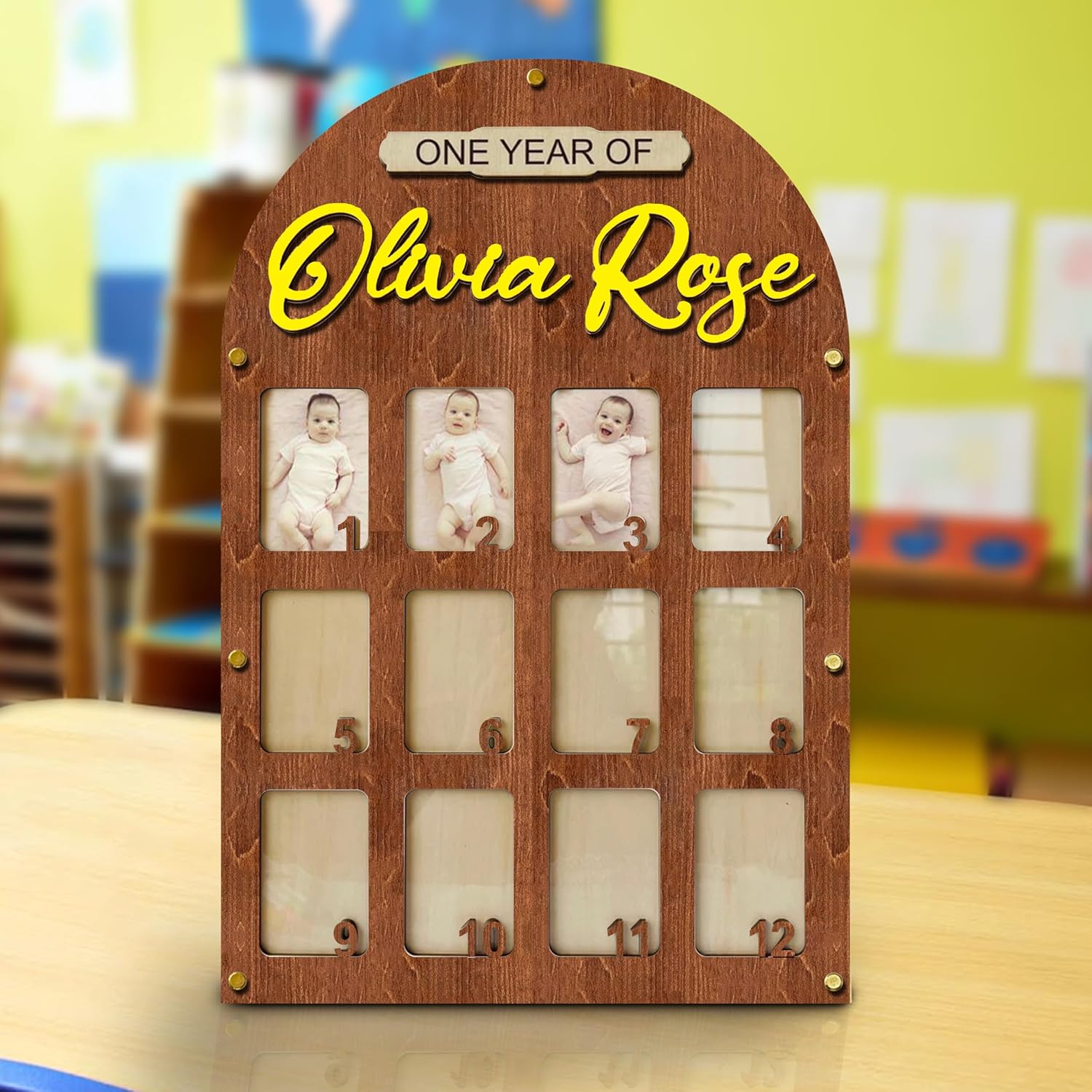 - Our my first year frame features a unique design with hook and point stickers for easy hanging and decoration. Made from high-quality, thick wood, this 12 Month Photo Frame offers lasting durability. Let your baby's photos shine in these baby milestone board, babys first year photo frame, 1-12 months baby milestone picture frame, baby first year frame and my first year picture frame, 12 months photo frame, first year baby frame and my first year picture frame 12 months.