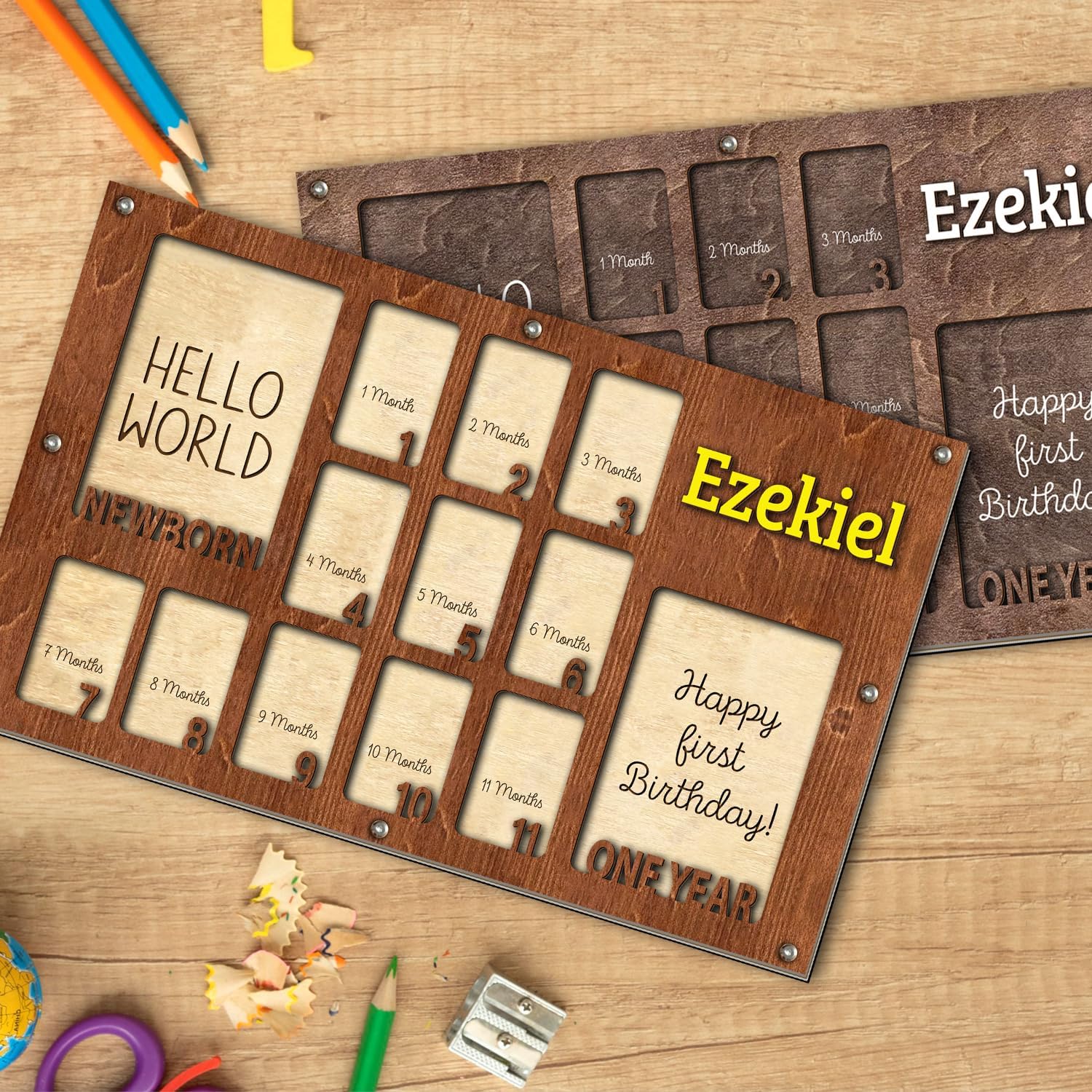 - Our my first year frame features a unique design with hook and point stickers for easy hanging and decoration. Made from high-quality, thick wood, this 12 Month Photo Frame offers lasting durability. Let your baby's photos shine in these baby milestone board, babys first year photo frame, 1-12 months baby milestone picture frame, baby first year frame and my first year picture frame, 12 months photo frame, first year baby frame and my first year picture frame 12 months.