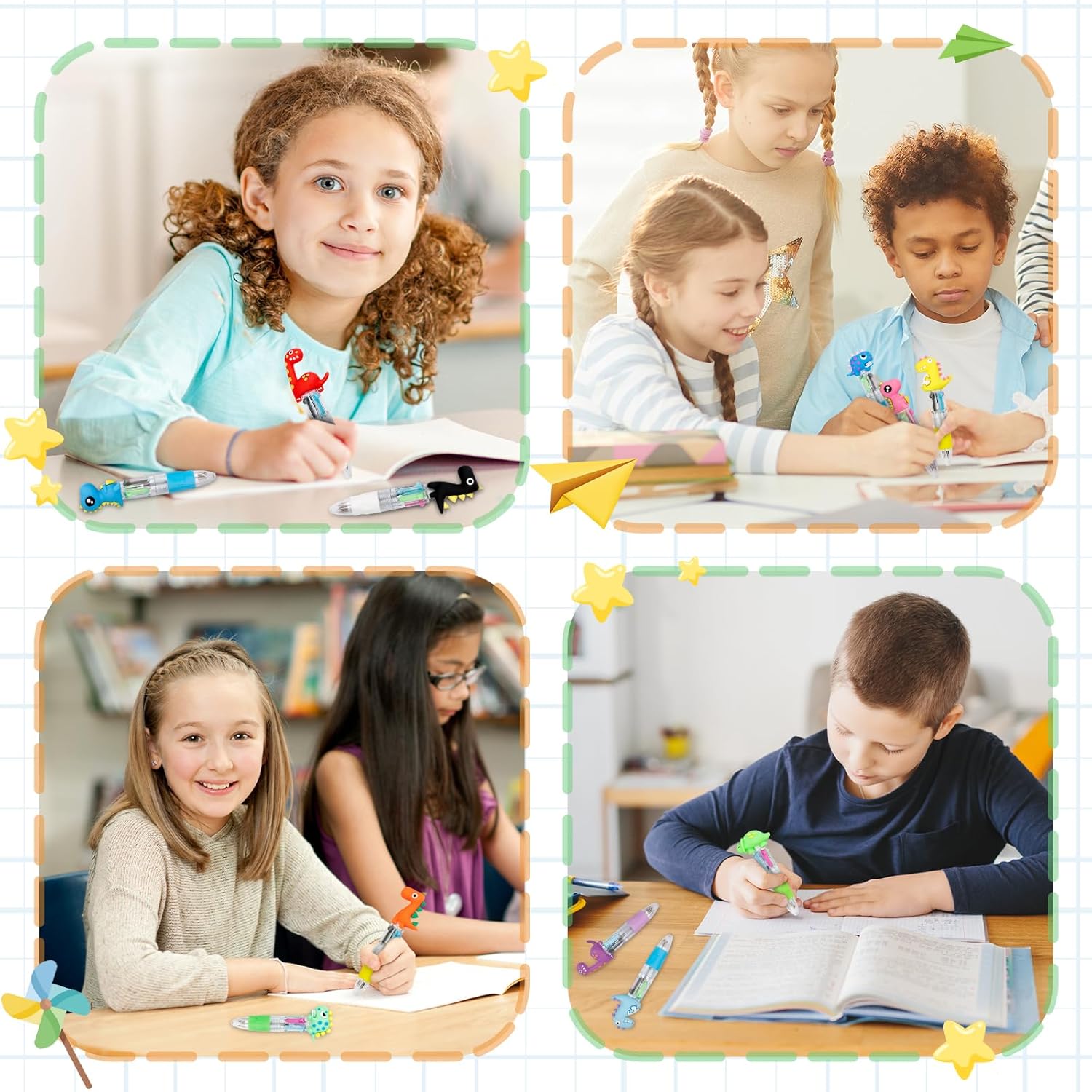 30Pcs Mini Multicolor Pens in One 4-in-1 Cute Pens Bulk for Kids, Ballpoint Pen for Birthdays and Children's Parties, Fun Gifts Assorted Ink Kawaii Pen(Dinosaur)