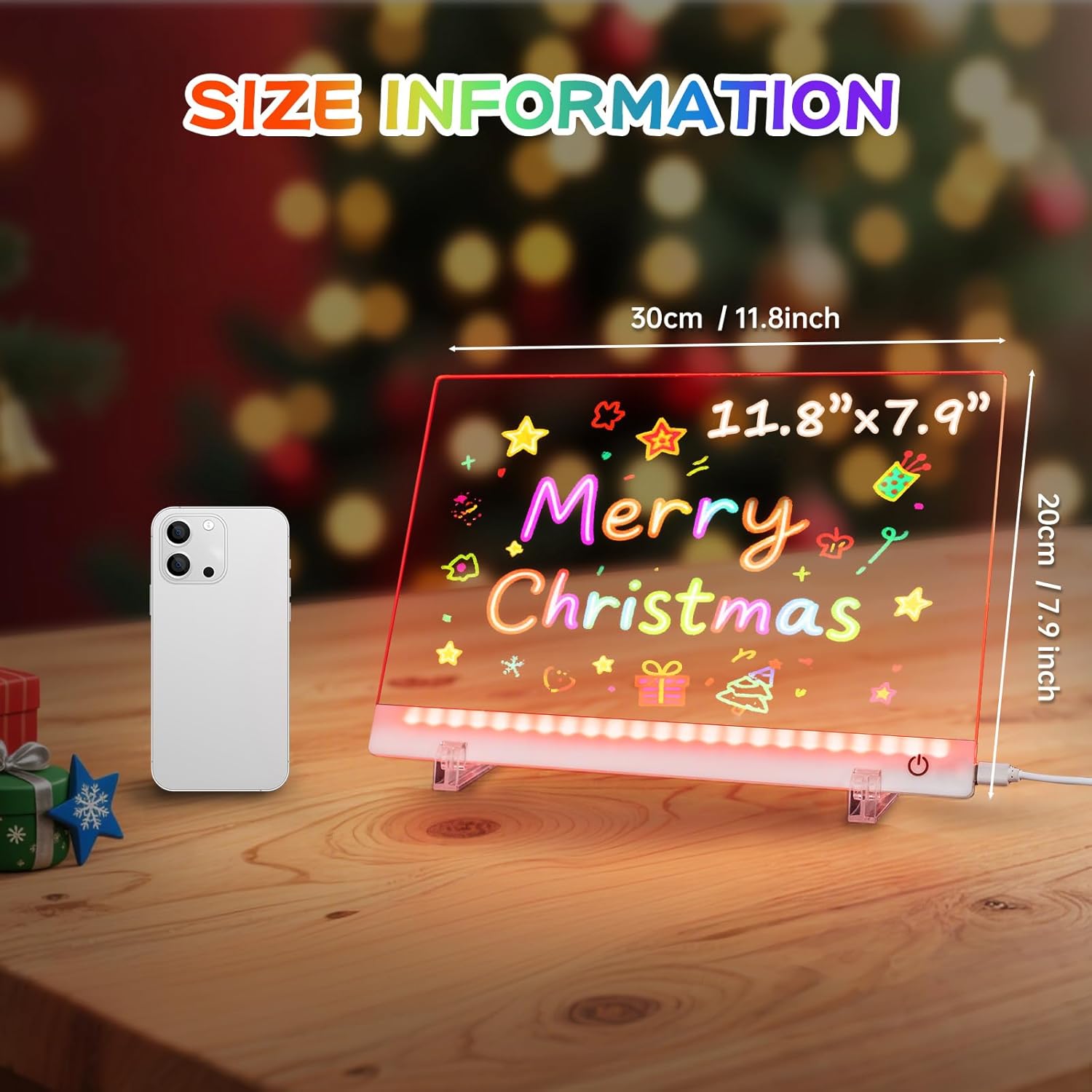 Led Drawing Board with Colors, Acrylic Dry Erase Board with Stand, 4 Modes & 6 Colors, Include 7 Dry Erase Markers, Clean Spone, Birthday Gift for Boys Girls, Party, Halloween, Christmas Home Decor