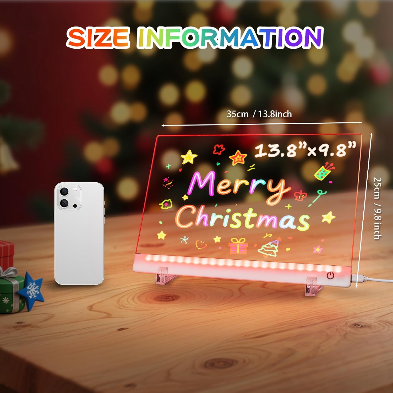 Led Drawing Board with Colors, Acrylic Dry Erase Board with Stand, 4 Modes & 6 Colors, Include 7 Dry Erase Markers, Clean Spone, Birthday Gift for Boys Girls, Party, Halloween, Christmas Home Decor