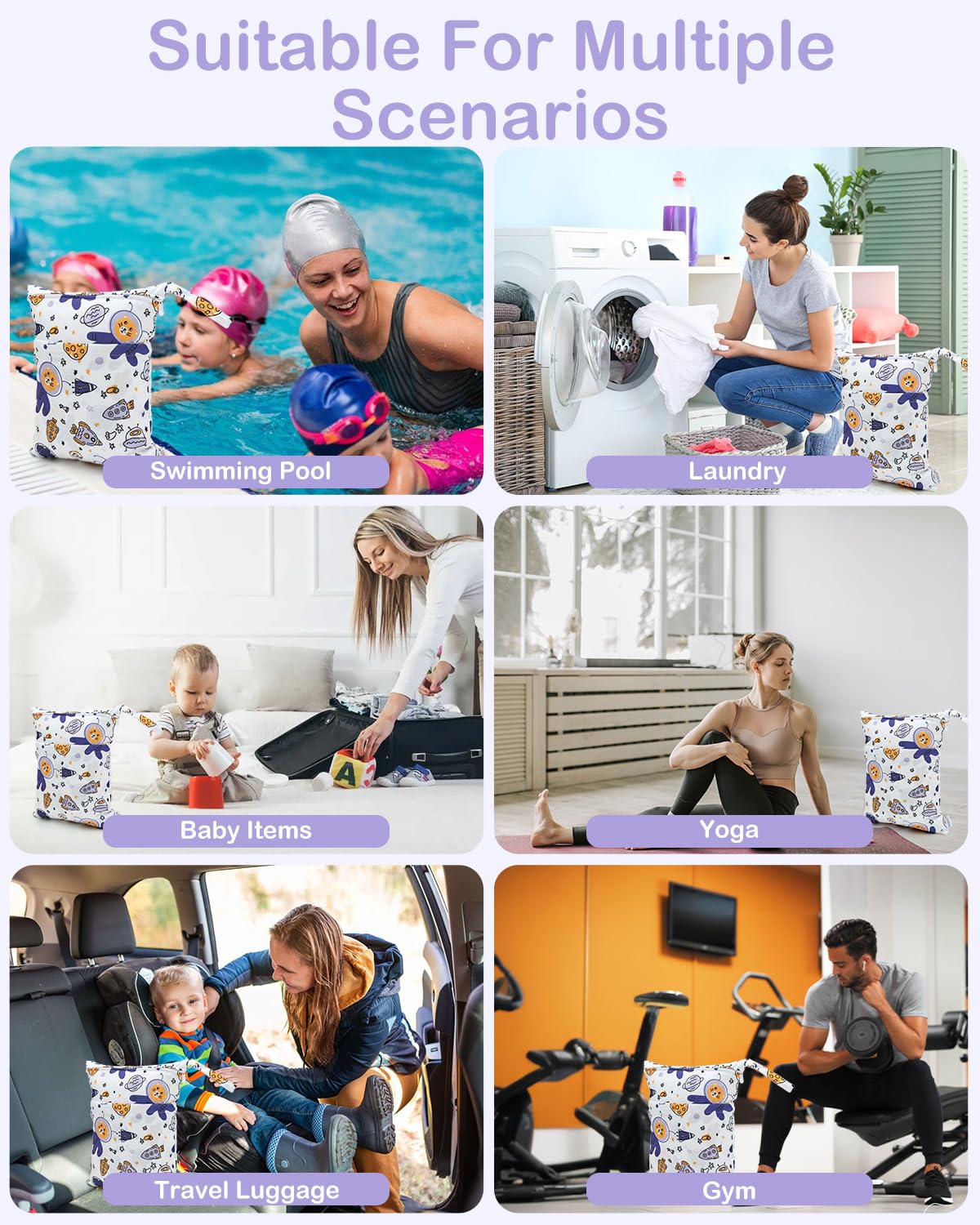 - Multi-functional Bags-A truly wonderful bag that allows you to carry your wet and dry items in the same bag. Carry all your items in one bag while keeping your dry items dry and your wet or soiled items separate. Truly an all in one bag! They can be used as diaper wet dry bags,travel bags,storage bags,cosmetic bags,handbags,wash bag,organizer bags.