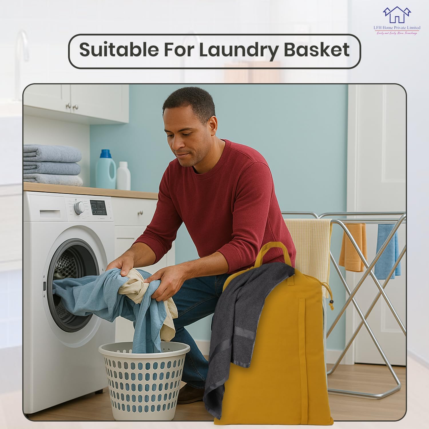 LFH Home Cotton Canvas Large Laundry Bag with Handle, Heavy Duty Drawstring Closure Washable Laundry Bags, School Travel, Home, Hotel, College Dorm, Organizer Sack, Toys Clothes 24x36-Yellow